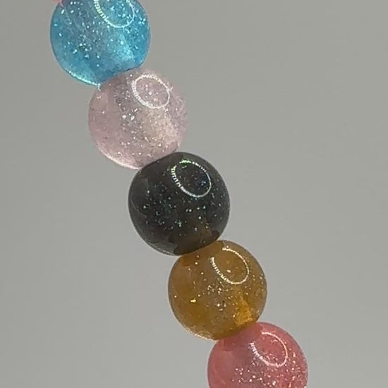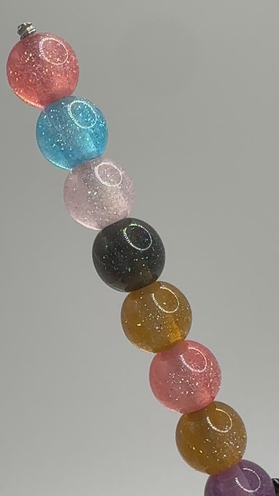 Price is for one randomly picked mixed 50pc. color pack of 8mm Glitter beads. Holes on most of these beads fit beadable pens, although a few have to be twisted to fit all the way down on the pen.