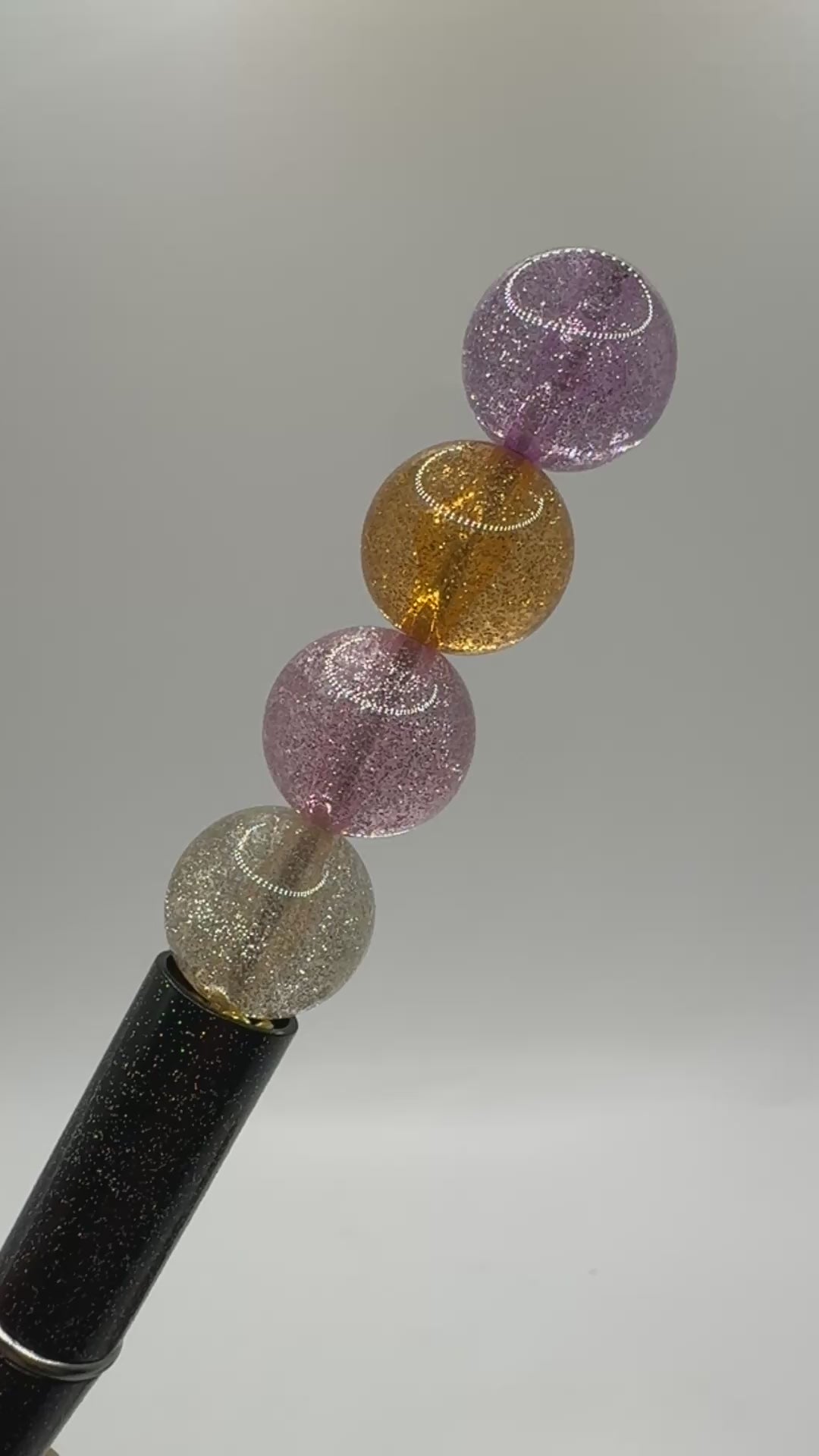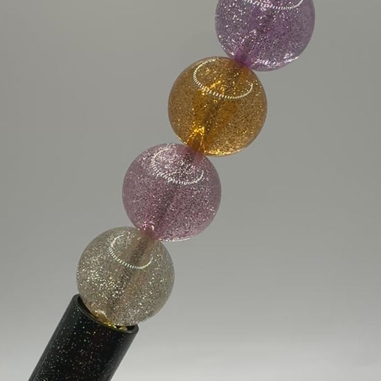 Price is for one radomly mixed 20pc. color bag of 16mm beads. Beads feature a fine dusting of glitter inside. Holes are big enough to fit beaded pens.