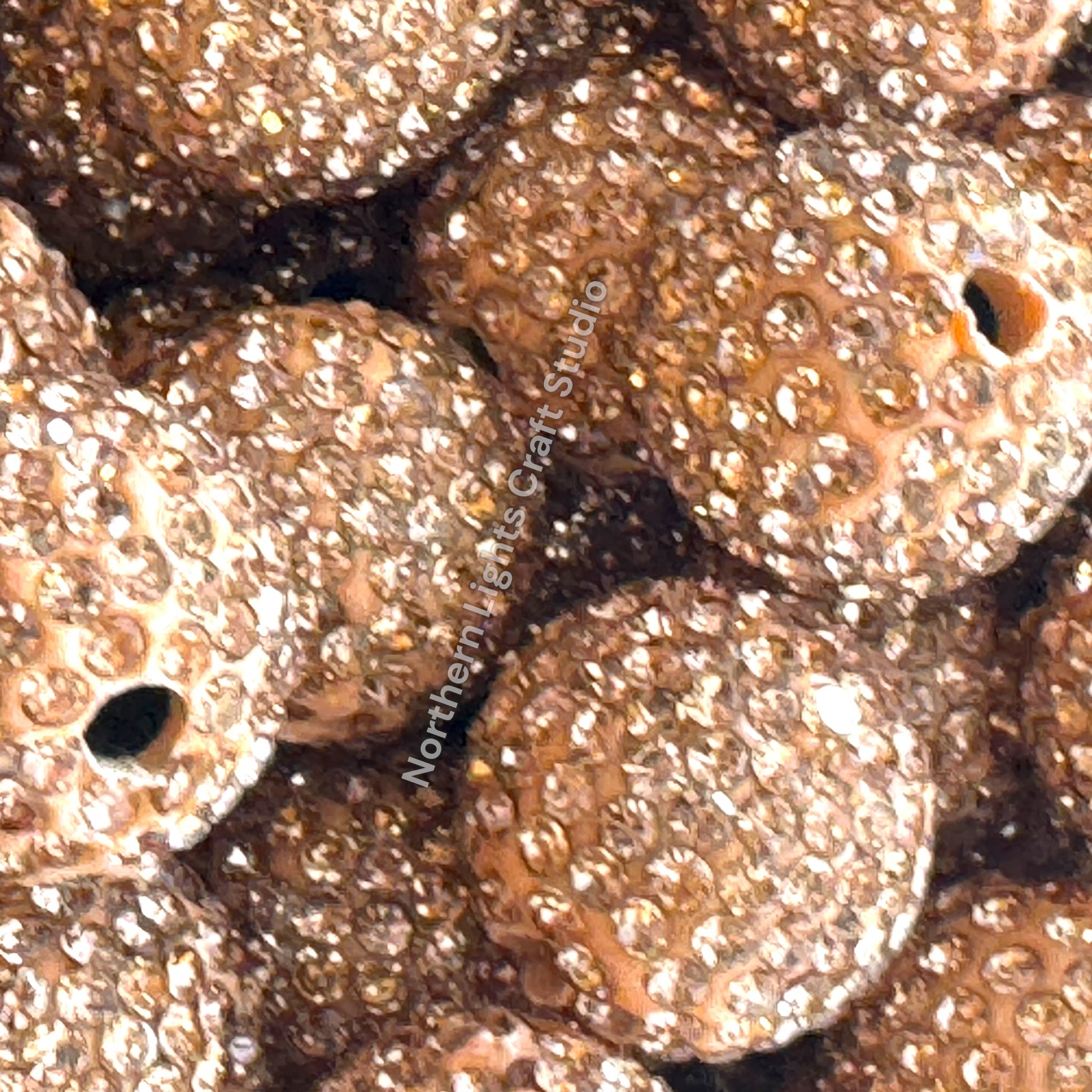 Price is for 10 16mm clay rhinestone beads. Beads are made from a clay base with rhinestones placed into the base for a shambala effect. The hole is large enough to fit on beaded pens. Due to the handmade nature of the clay beads, there may be irregularities. Photo of beads on pen is just an example of how they look and fit on pens.