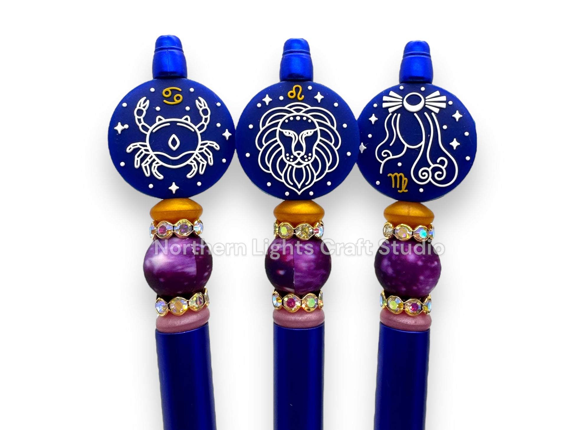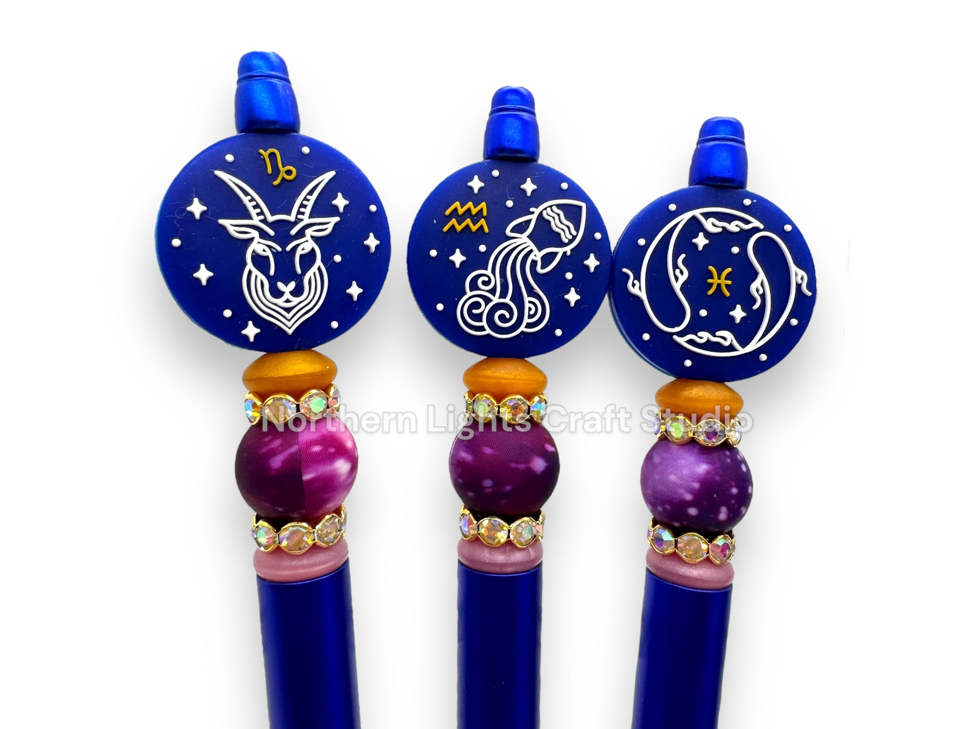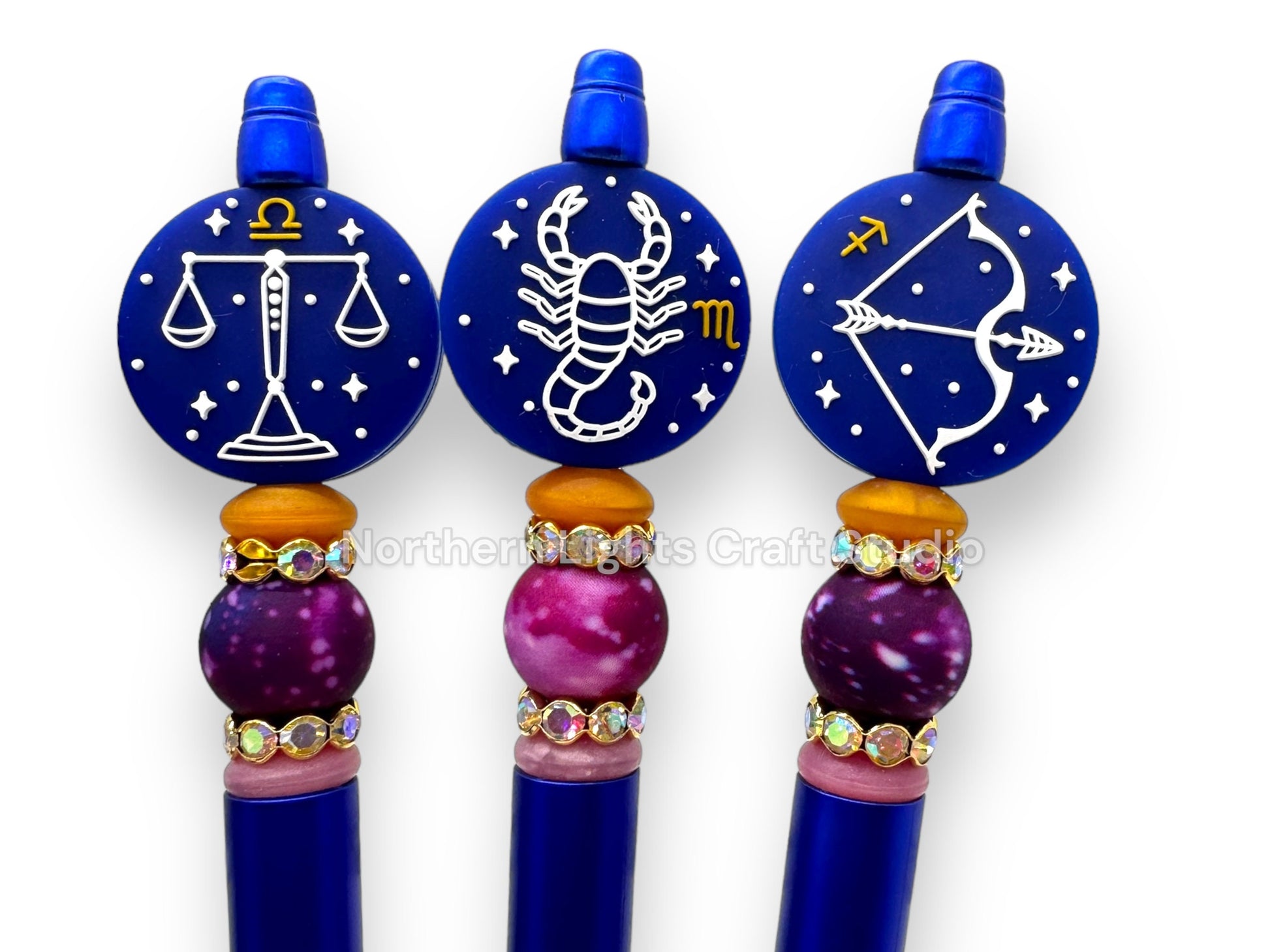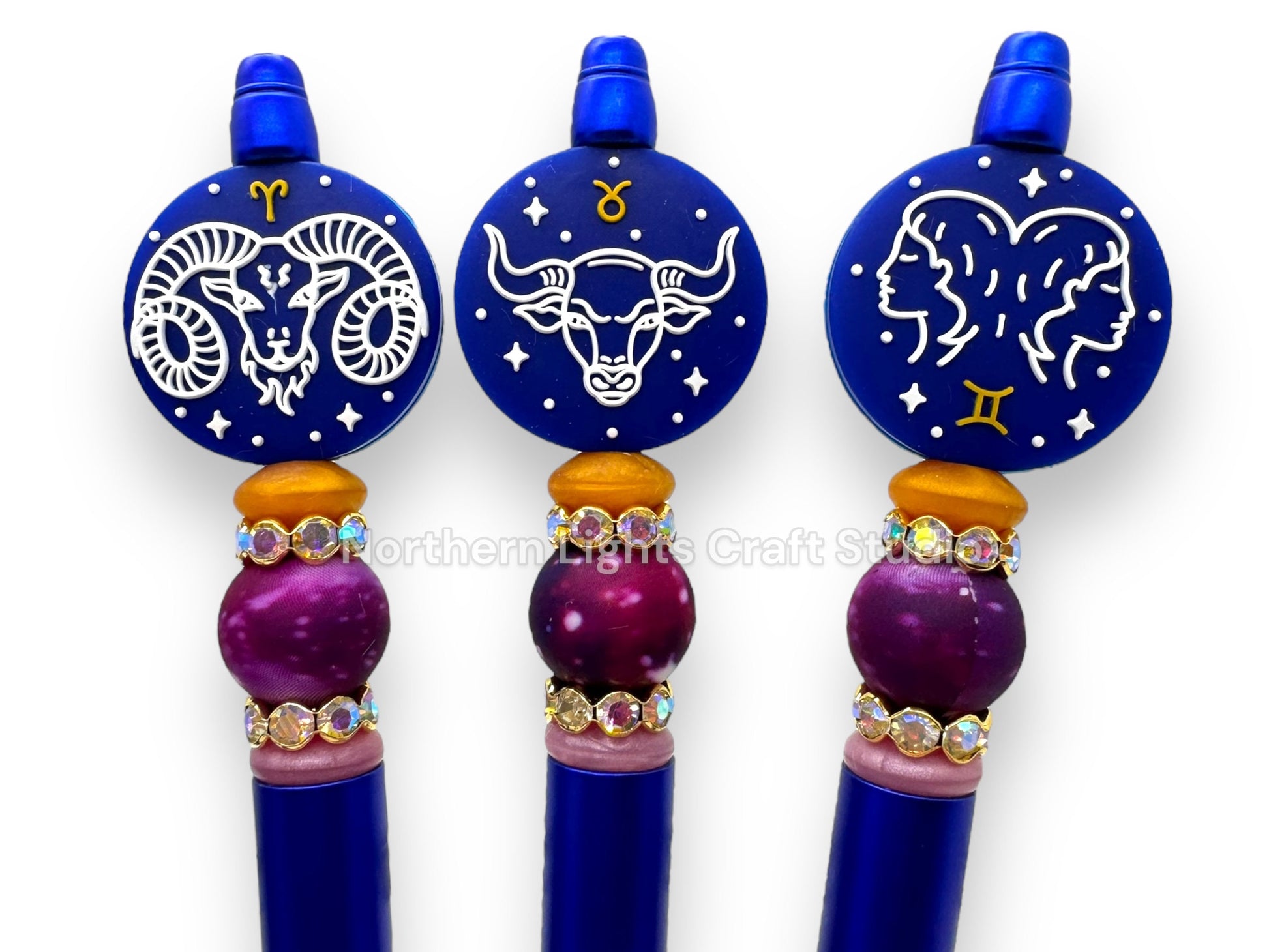 Handmade Beaded Zodiac Pen, Custom Beaded Astrological Sign Pen, Zodiac Sign Gift