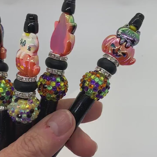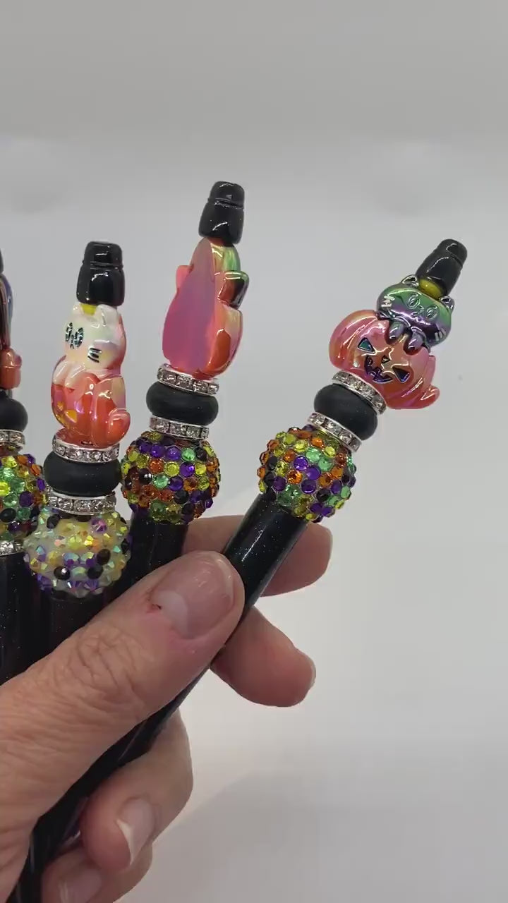 Handmade Halloween Bead Pens, Beaded Halloween Pens, Halloween Bead Pens, Pumpkin Cat Pen, Bling Halloween Pens, Handmade Halloween Beads