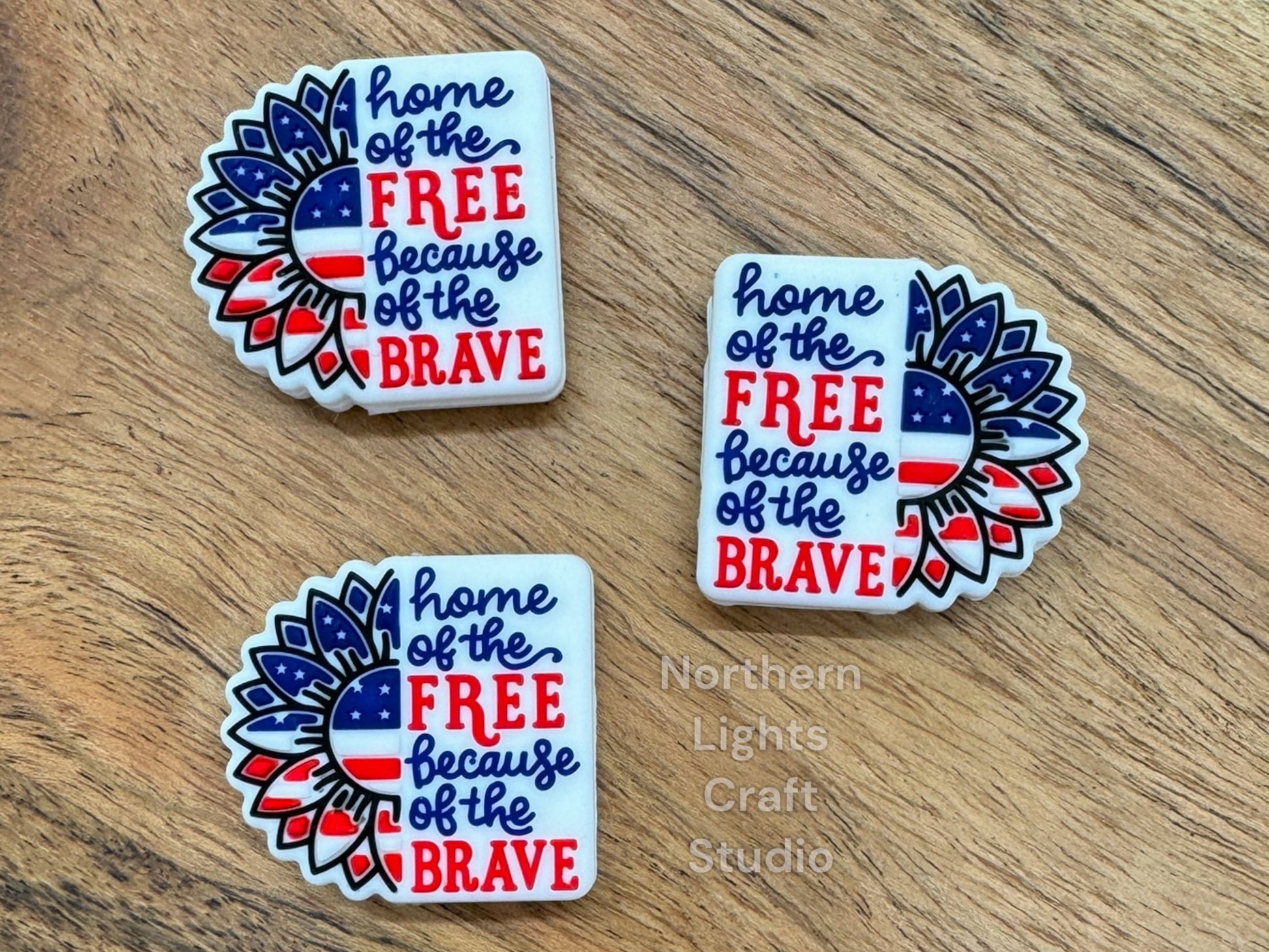 Home of the Free Because of the Brave Focal Bead, New Release Focal, Silicone Focal, Honoring Veterans Bead