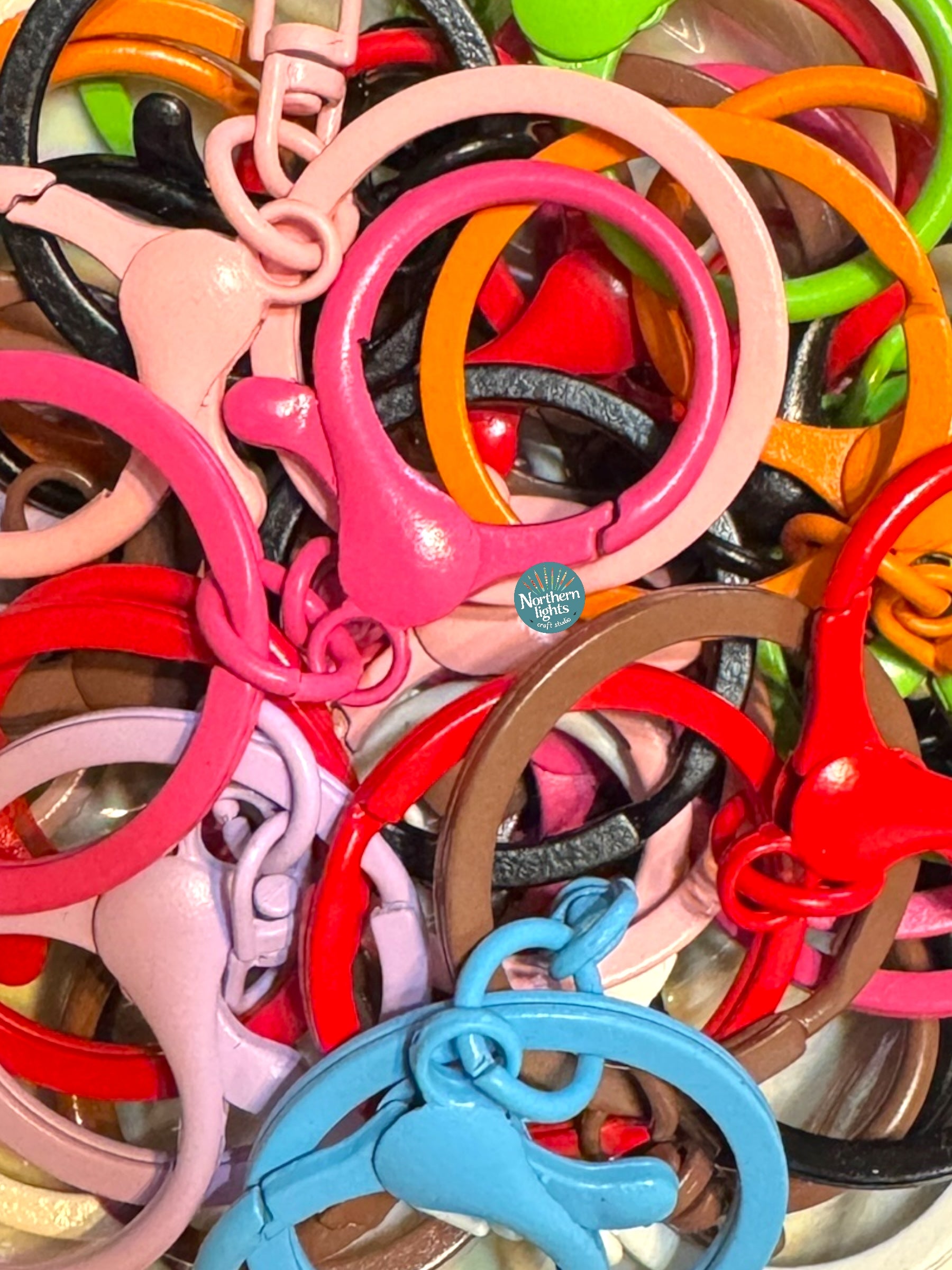 2.6in. (6.5mm) in length, lobster claw opening is approximately 1" and keyring is approximately 1.2" /-- mix bag of 10