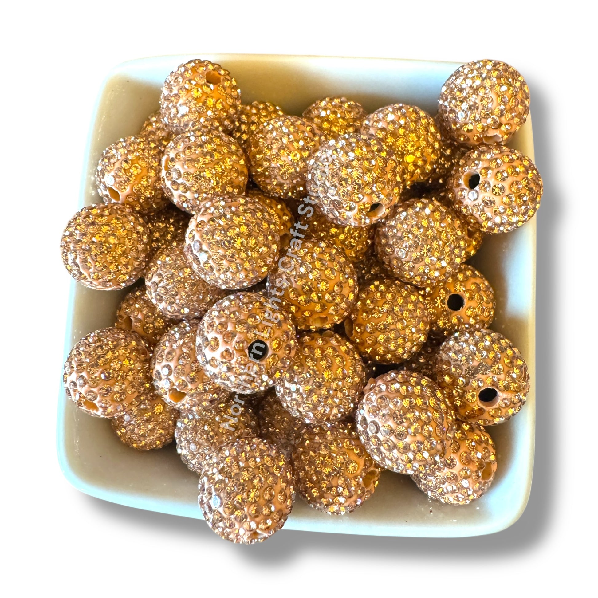Price is for 10 16mm clay rhinestone beads. Beads are made from a clay base with rhinestones placed into the base for a shambala effect. The hole is large enough to fit on beaded pens. Due to the handmade nature of the clay beads, there may be irregularities. Photo of beads on pen is just an example of how they look and fit on pens.