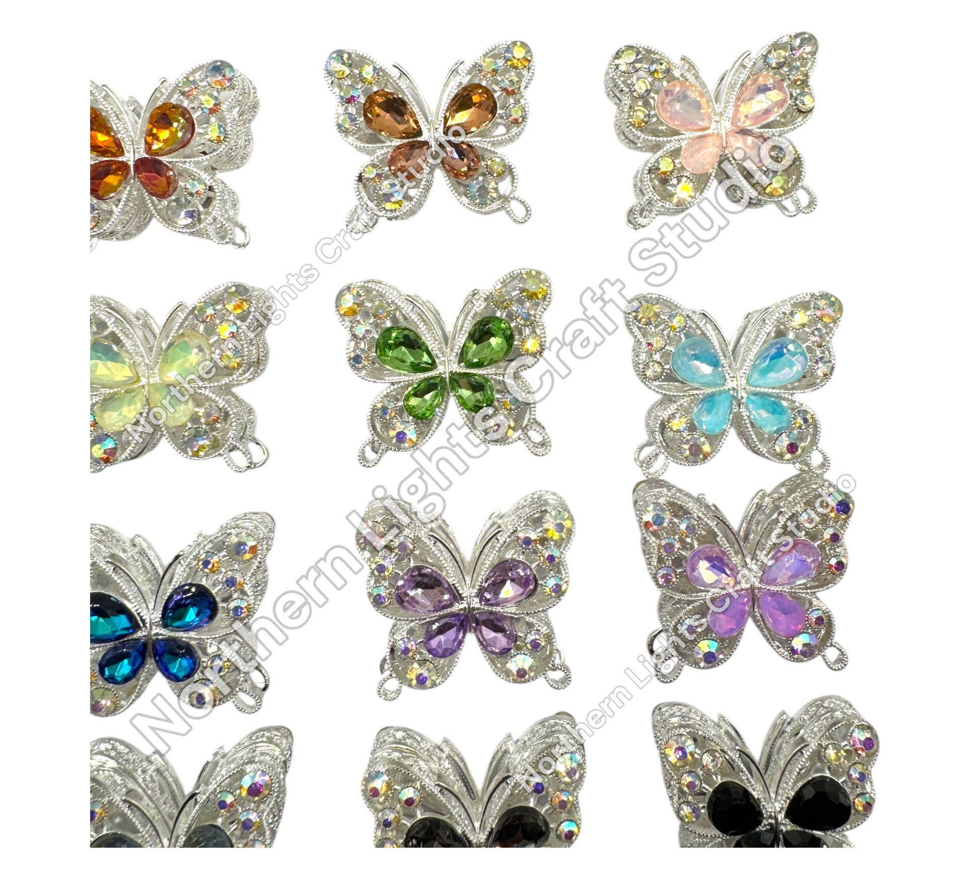 Expertly crafted with metal silver alloy and glass, our 30x34 butterfly beads add a unique touch to any beadable item. Their drilled design ensures easy placement on items like beadable pens and keychains. Colors may vary slightly due to handmade nature and may be slightly different in the same batch.