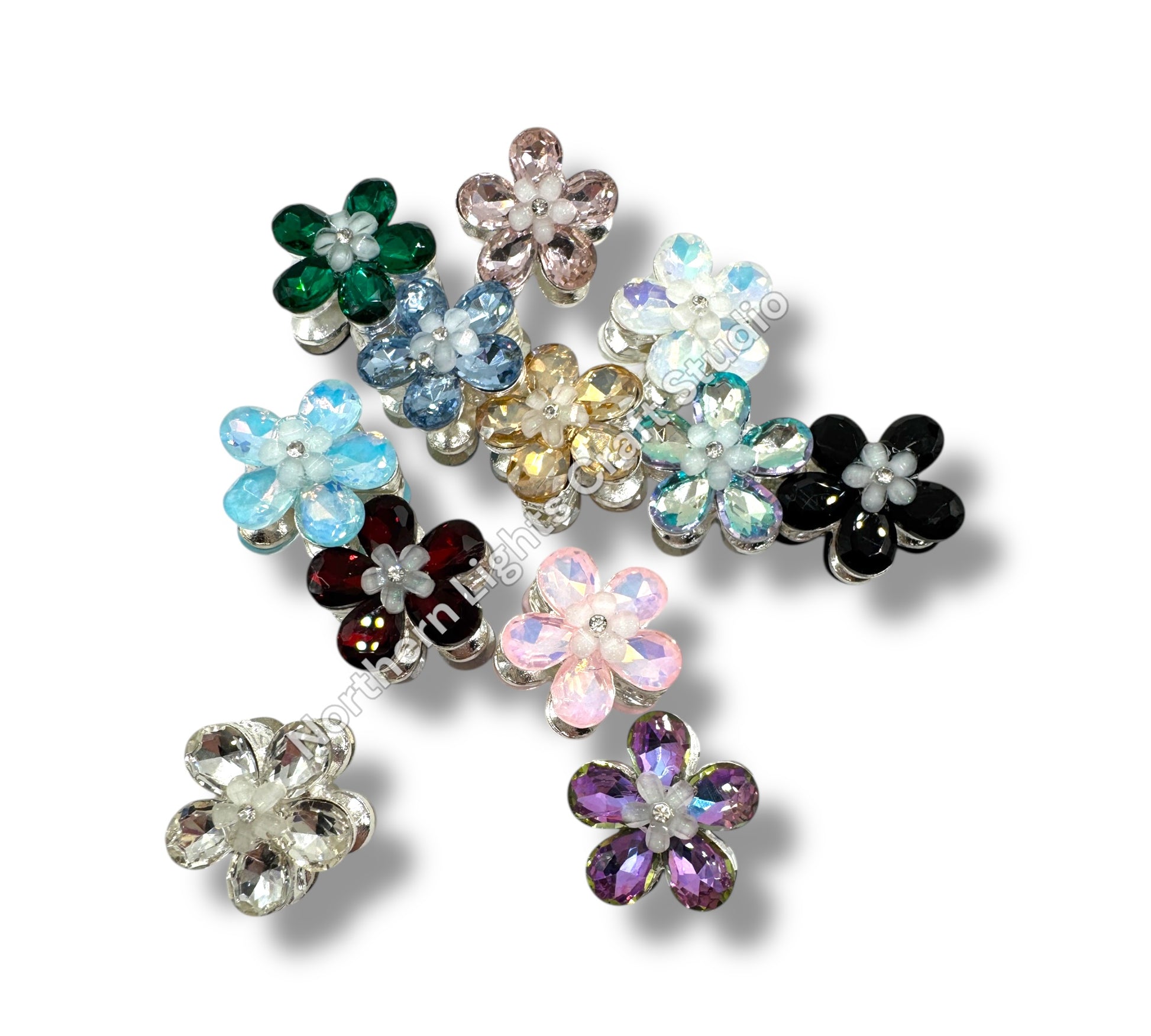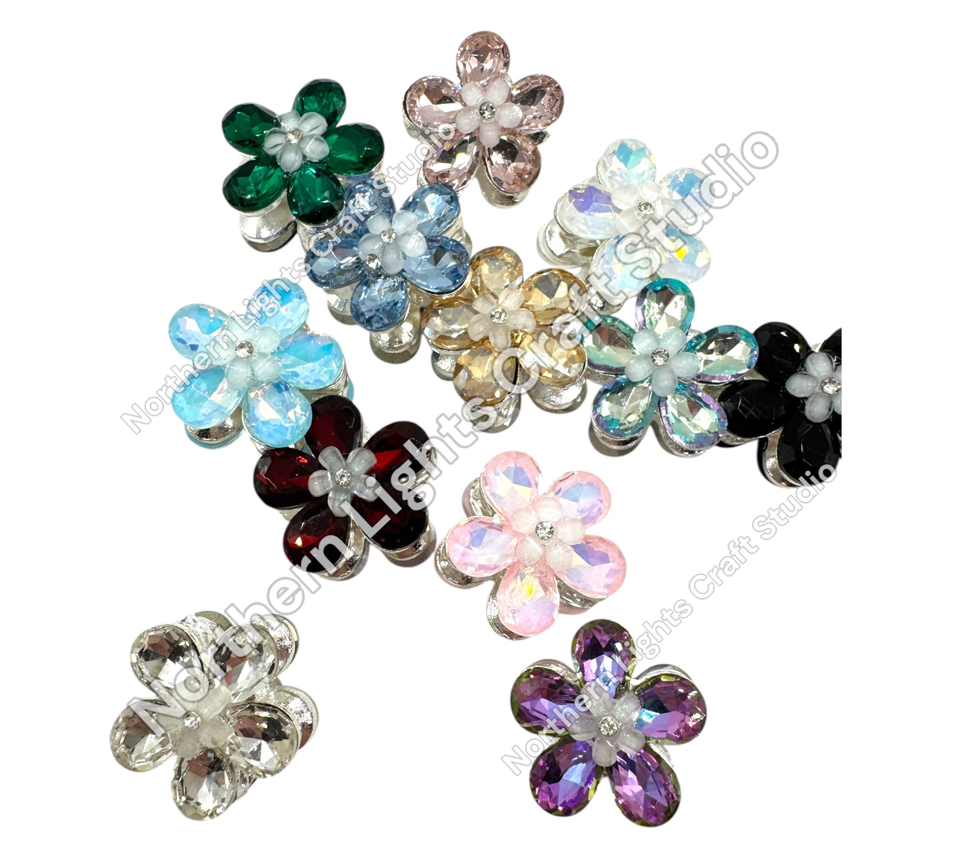 Metal Flower Crystal Beads 4 piece mix