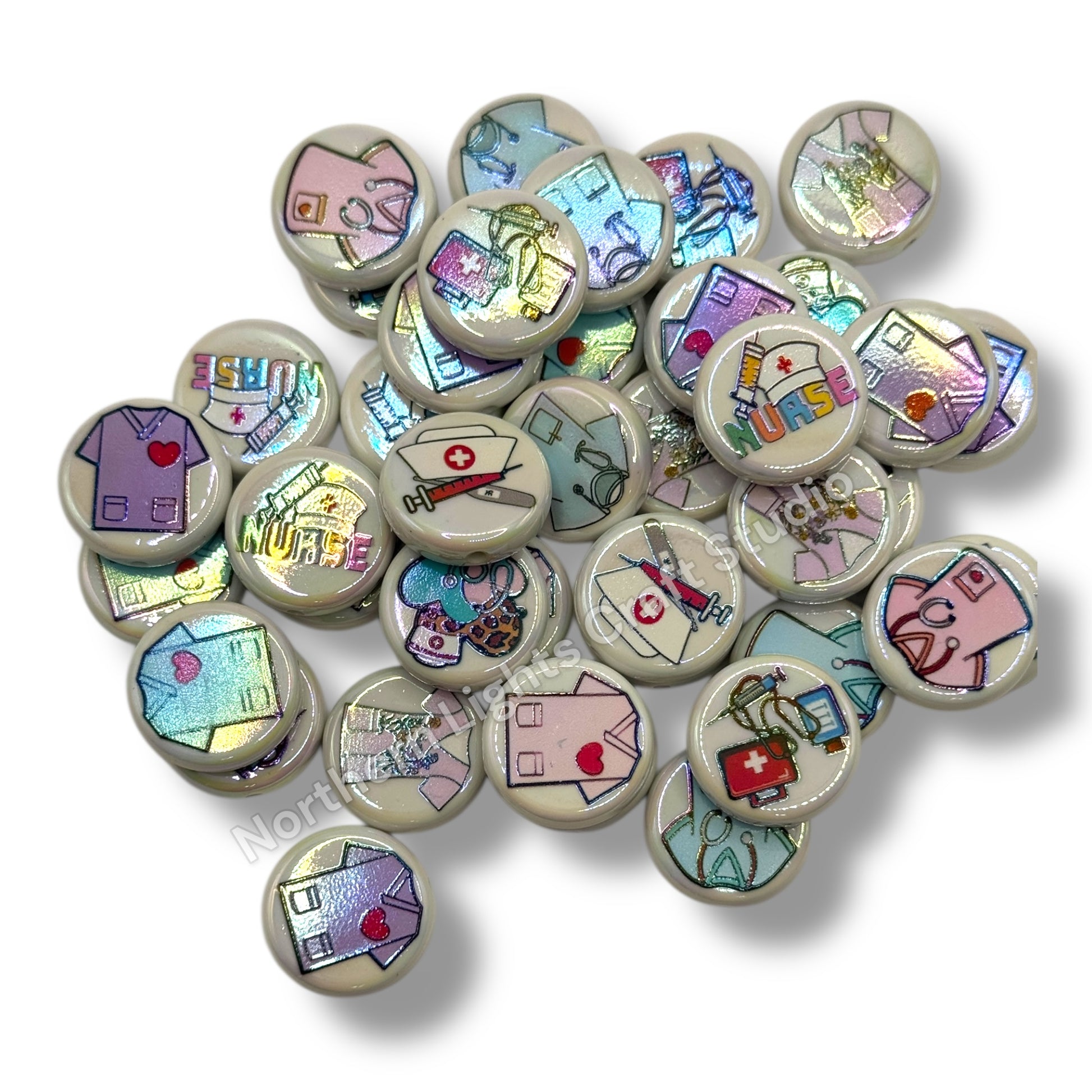 Nurse Printed Acrylic Bead Mix - 10 pc.