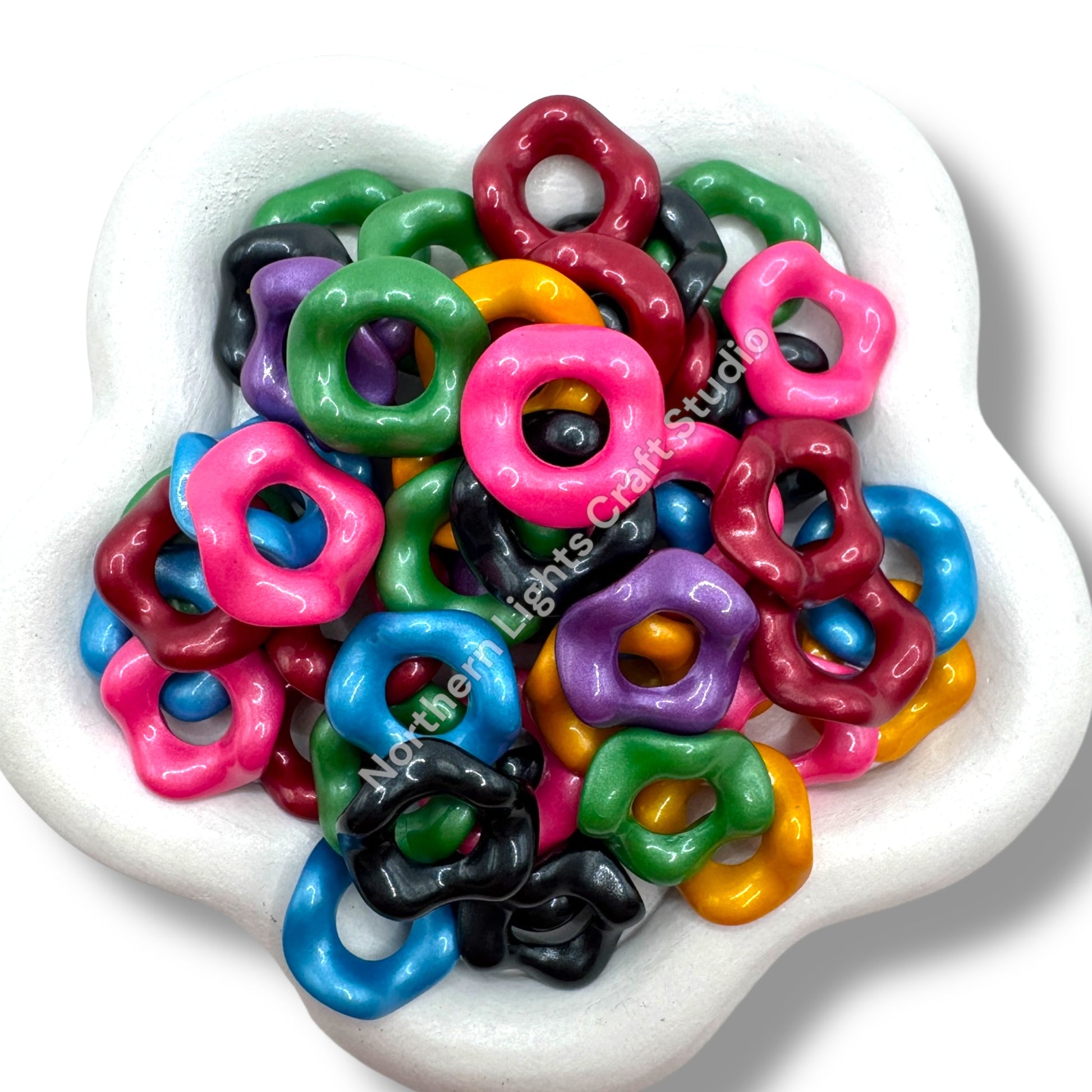 Price is for one 50 mix of colorful 16mm spacers in a warm color pearl finish. Be sure to check out our other wavy spacer mixes and pair them with our colorful fuzzy spacers!