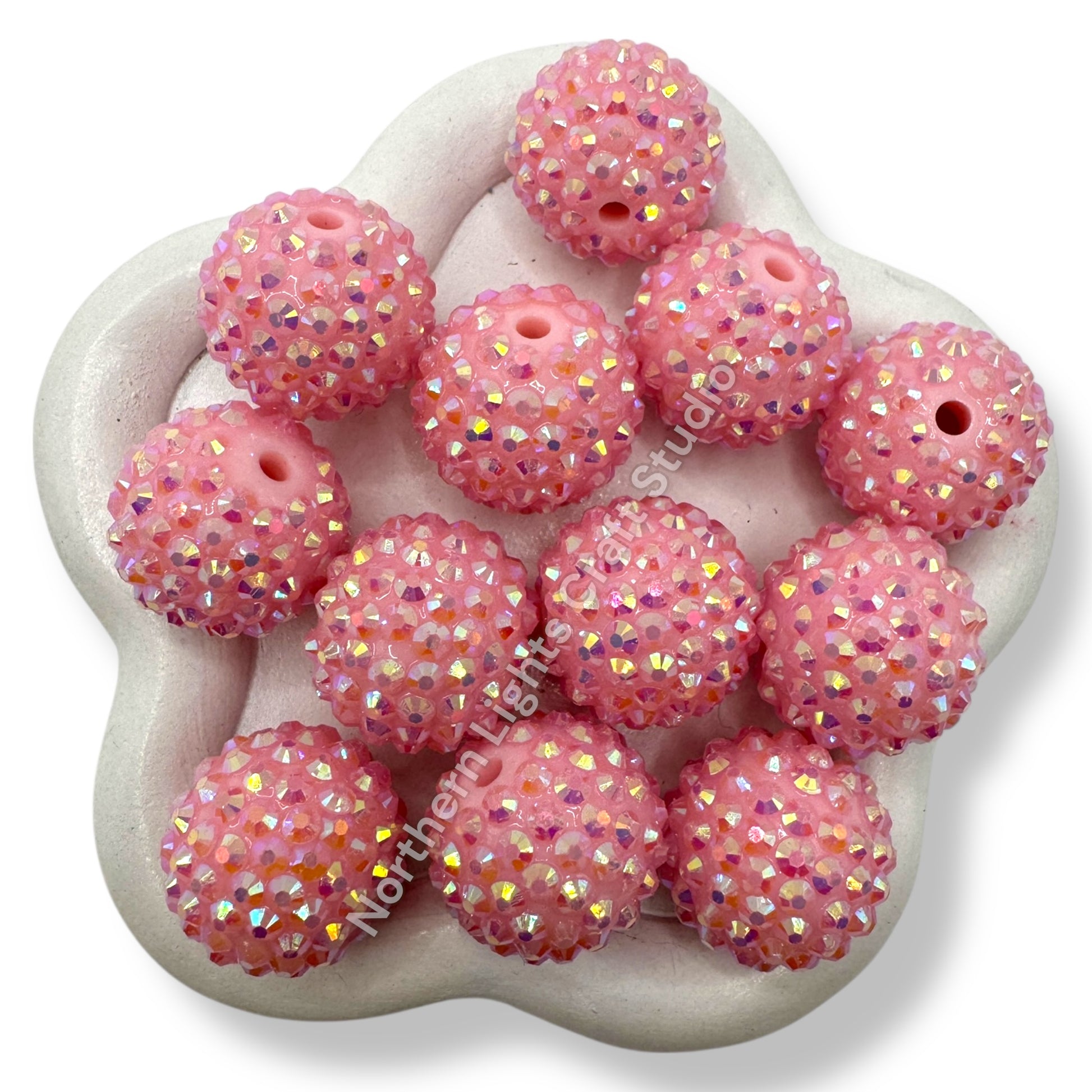 Price is for one 10 pack of pink ab 20mm acrylic rhinestone bubblegum beads.
