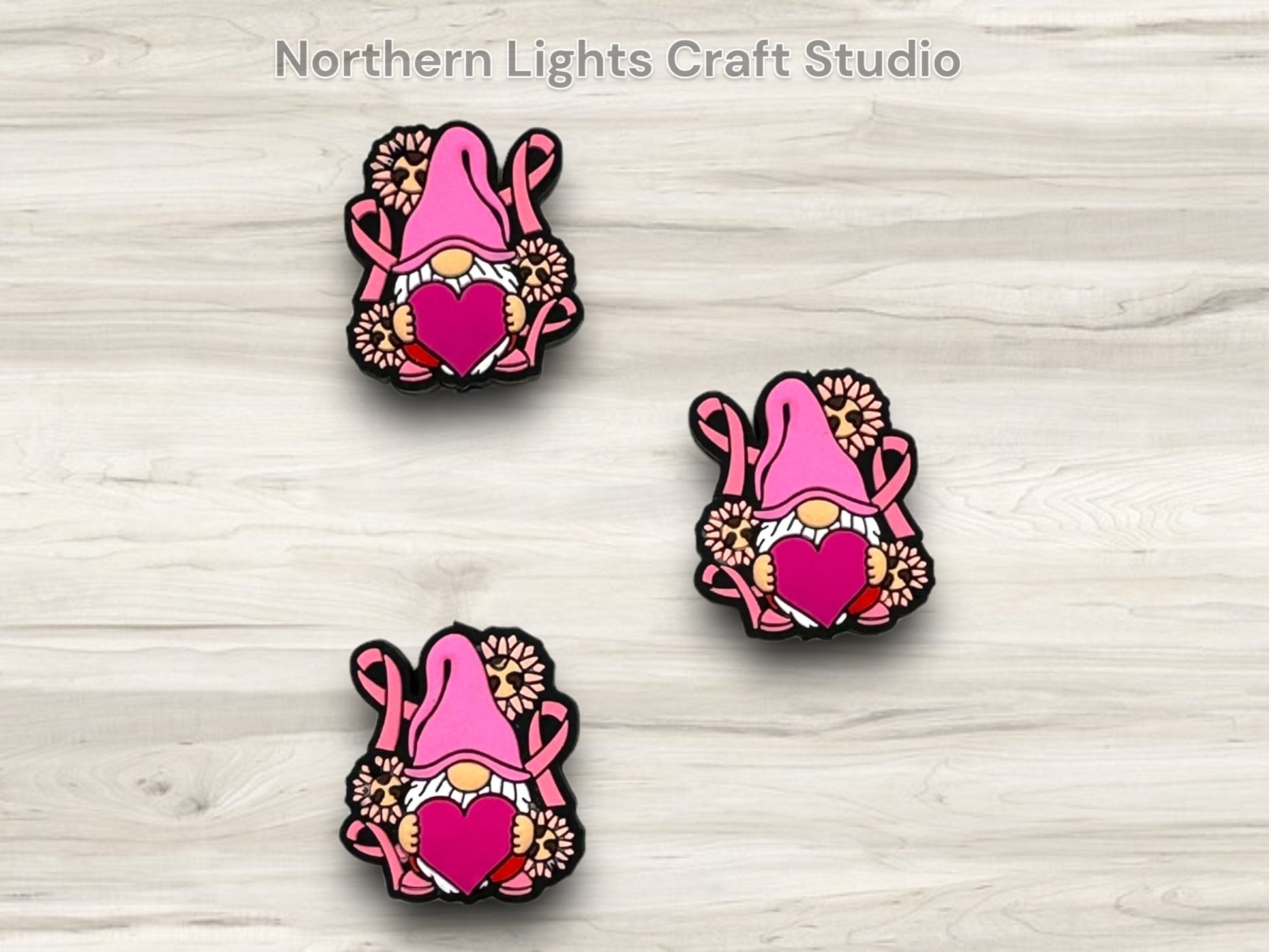 Pink Heart Breast Cancer Awareness Gnome, Breast Cancer Awareness Bead, Pink Ribbon Gnome Bead, In October We Wear Pink Gnome Bead