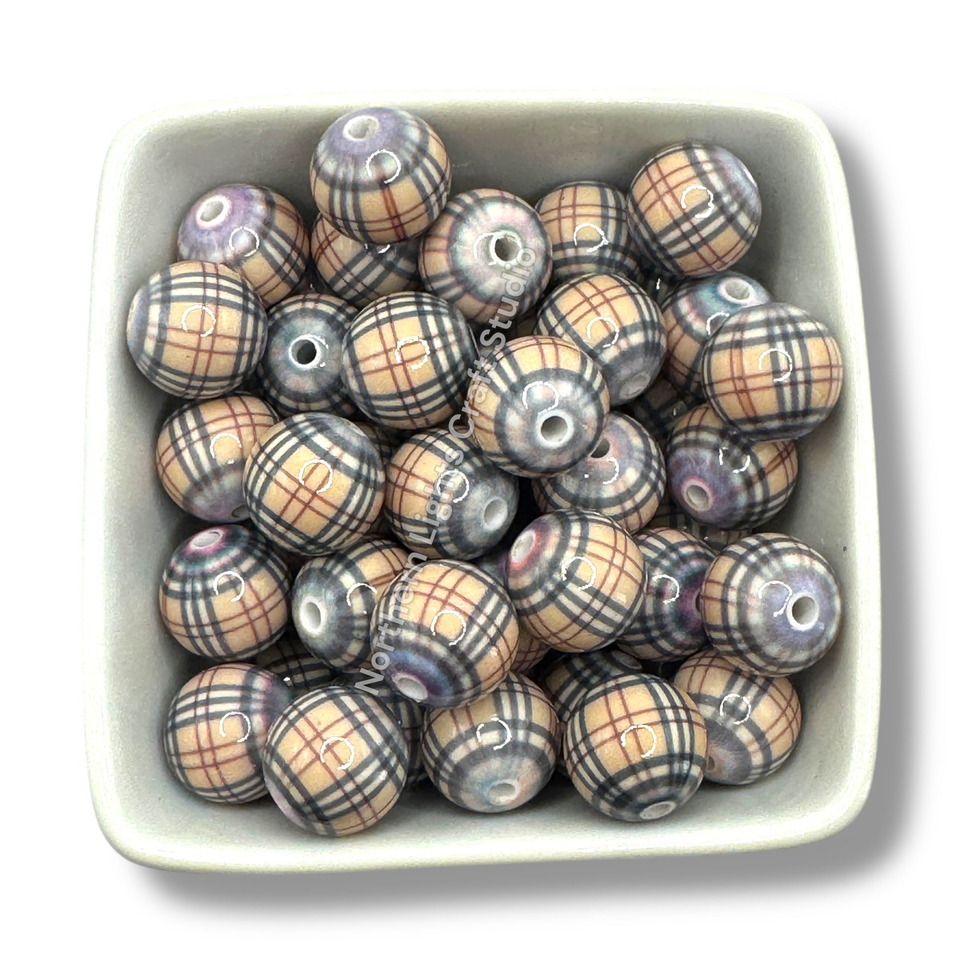 Price is for one bag of 10 pieces of acrylic 16mm beads with a plaid print. The holes are big enough to fit on beadable pens or beadable bar keychains.