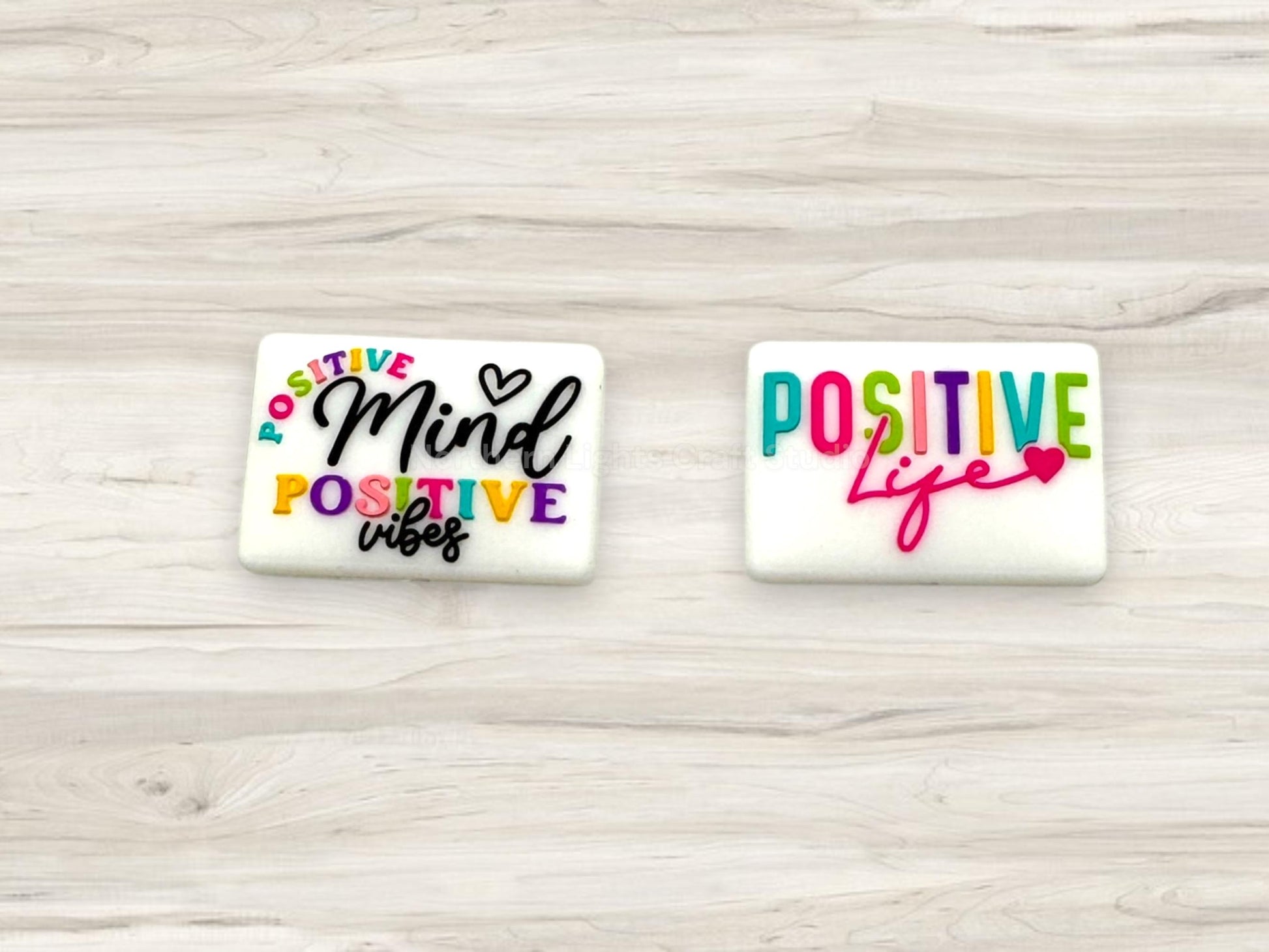 Price is for one Focal. Each focal has a different print on each side. One side says Positive Mind Positive Vibe, and the other side says Positive Life. These silicone focal beads are perfect for making beaded pens and beaded keychain.