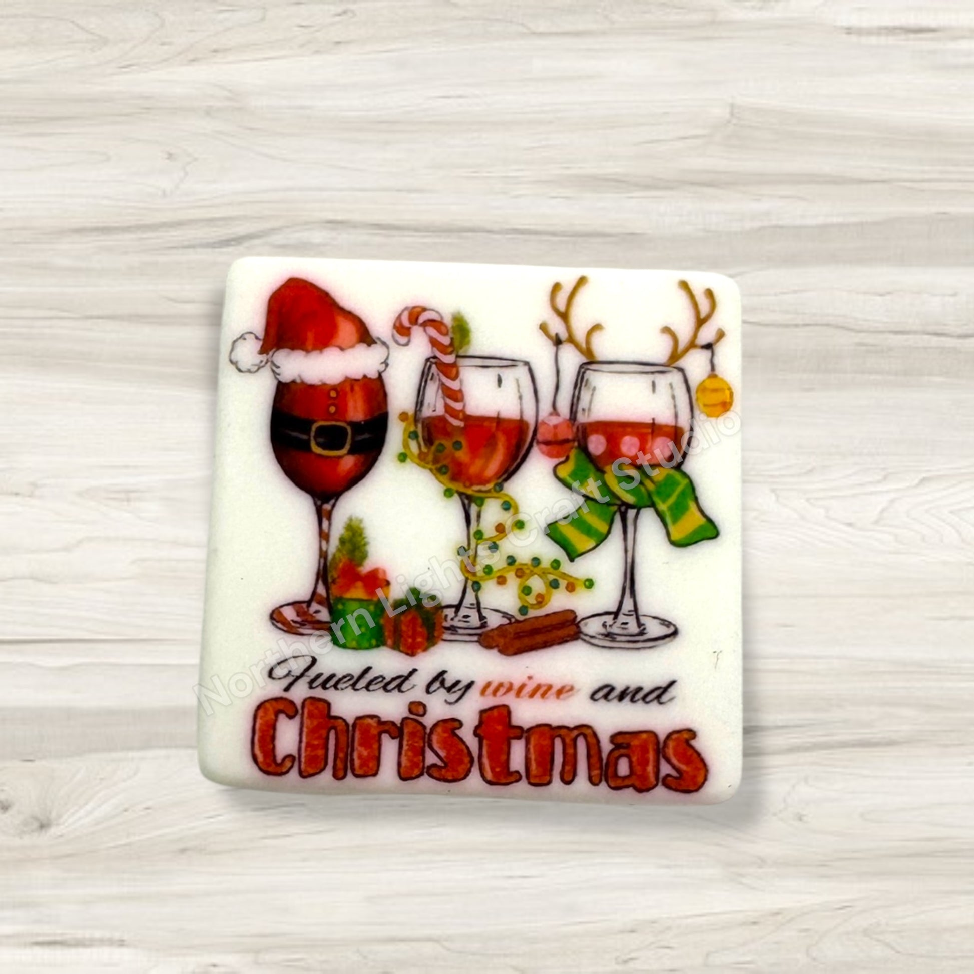 Price is for one focal bead. These focals have a whimsical holiday design that has been screen printed onto the focal.