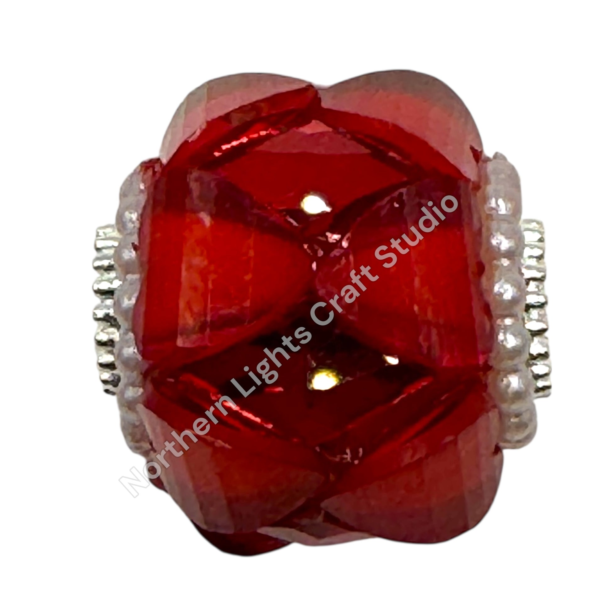 Price is for one fancy bead, you choose color. Beads have a glass heart charm row at the top and bottom with a diamond shape crystal in the center. Beads are approximately 19-20mm in size.