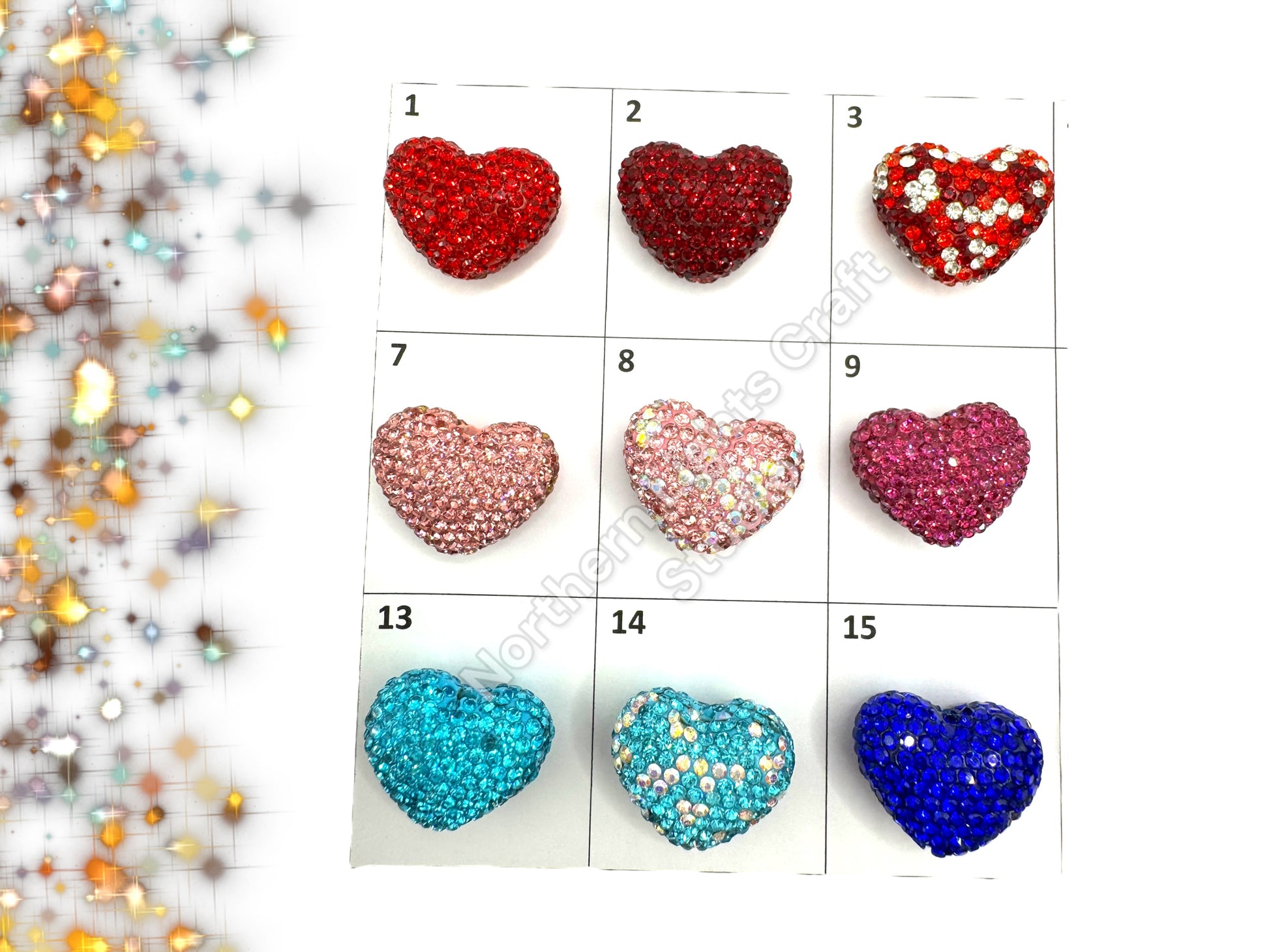 Rhinestone Heart Beads, Pave Heart Crystal Beads, Clay Pave Rhinestone Hearts, Crystal Hearts, Bling Hearts, - Read Description