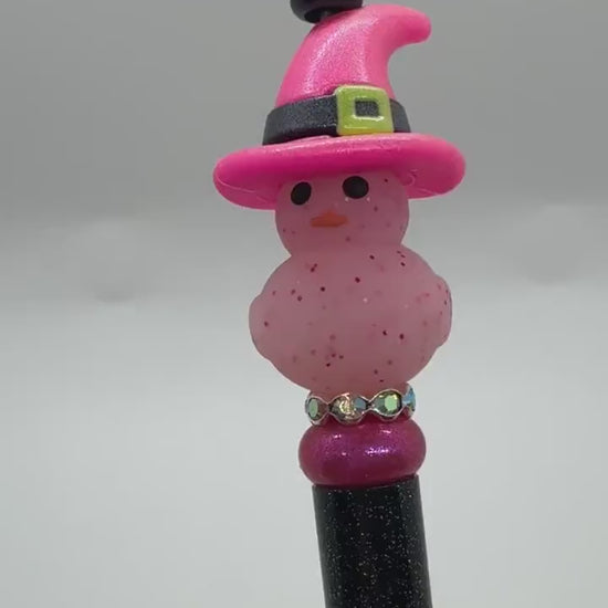 Rubber Duckie Halloween Pen, Rubber Duck Witch Hat Pen, Beaded Duckie Pen, Beaded Halloween Duck Pen