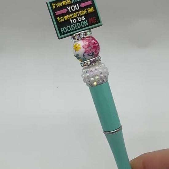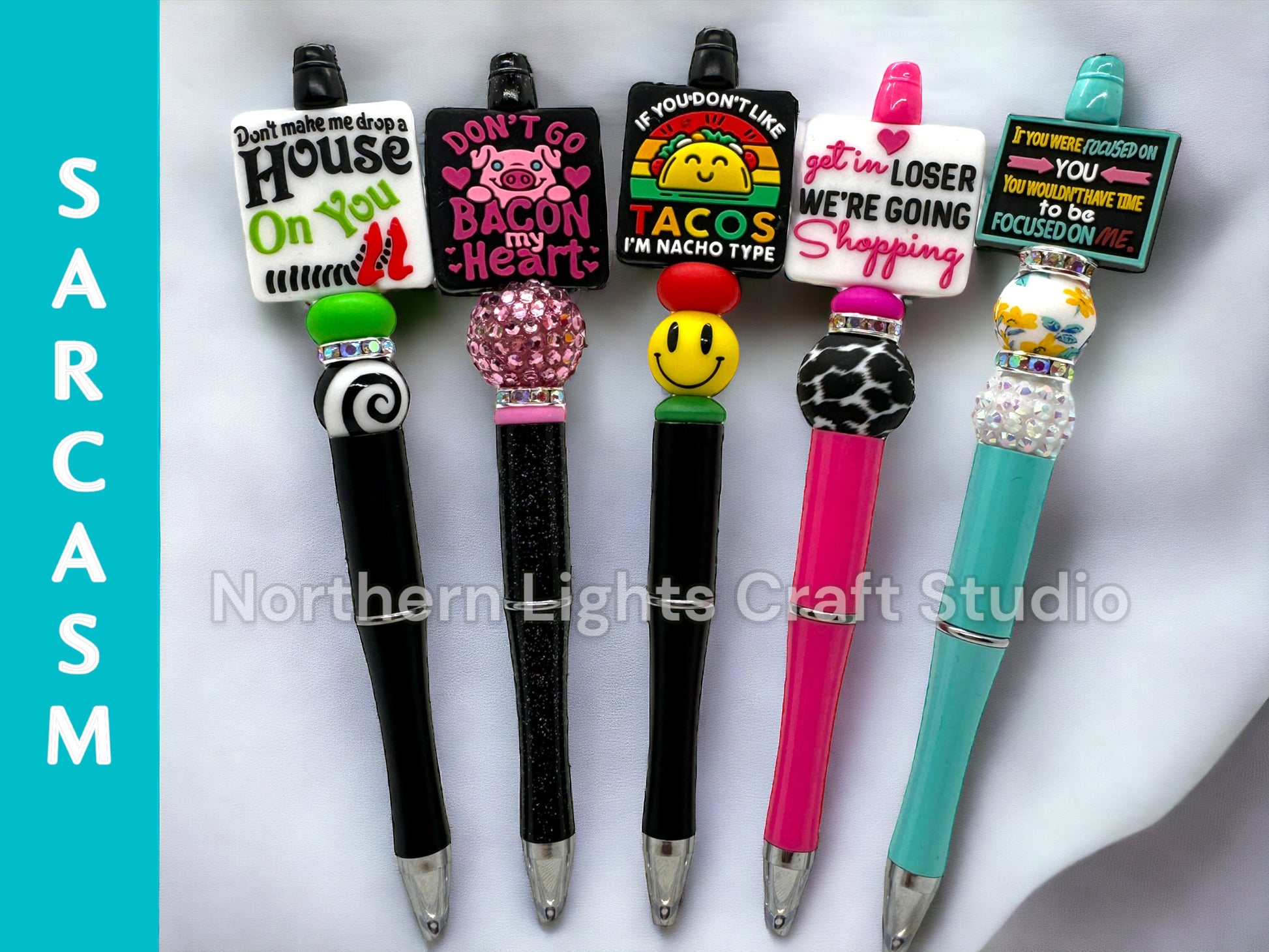 Our collection of custom beaded pens are just the thing to add an little sarcastic wit and to your desk! The pens are handmade, write with black ink, and are refillable! Each pen purchased comes with one refill. Listing is for one pen.