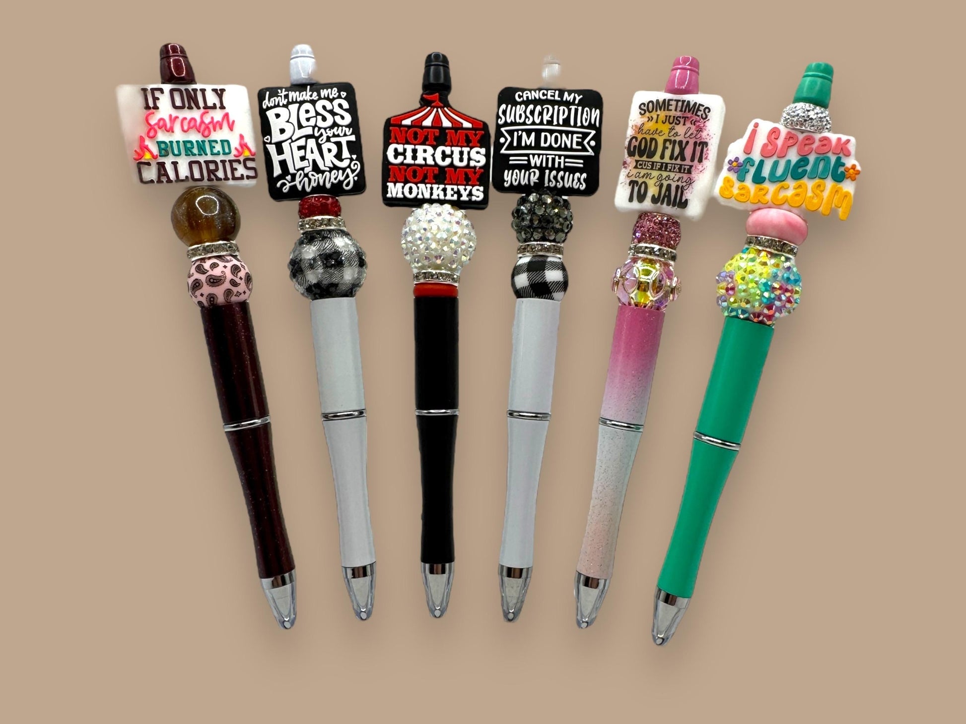 Sarcastic Pens, Bling Pens, Anxiety Pen, Custom Beaded Sarcastic Pens, Sarcastic Silicone Beads, Sassy Pens , Attitude Pens