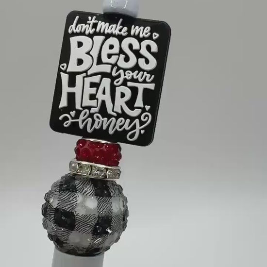Our collection of custom beaded pens are just the thing to add an little sarcastic wit and to your desk! The pens are handmade, write with black ink, and are refillable! Each pen purchased comes with one refill. *Note, please view individual photos for accurate pen design. At times some pens may require an extra spacer. Redesigns are photographed and added to the individual pen picture.