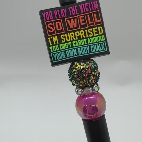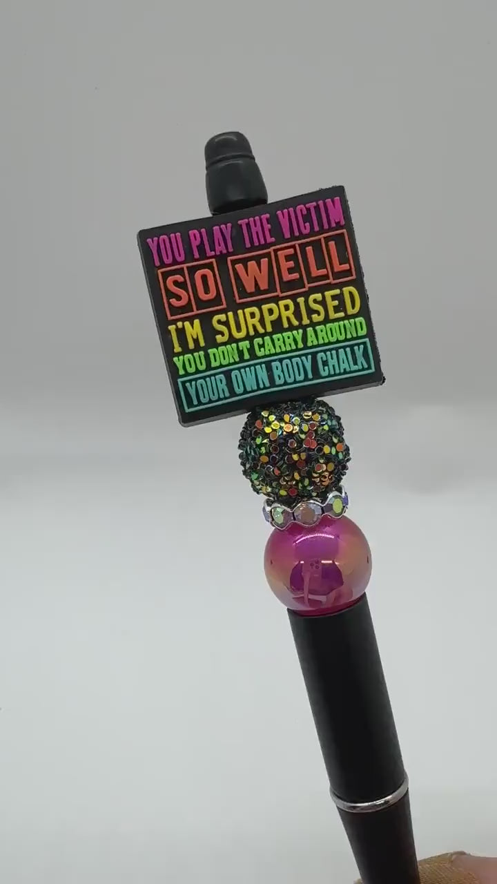 Our collection of custom beaded pens are just the thing to add an little sarcastic wit and to your desk! The pens are handmade, write with black ink, and are refillable! Each pen purchased comes with one refill.