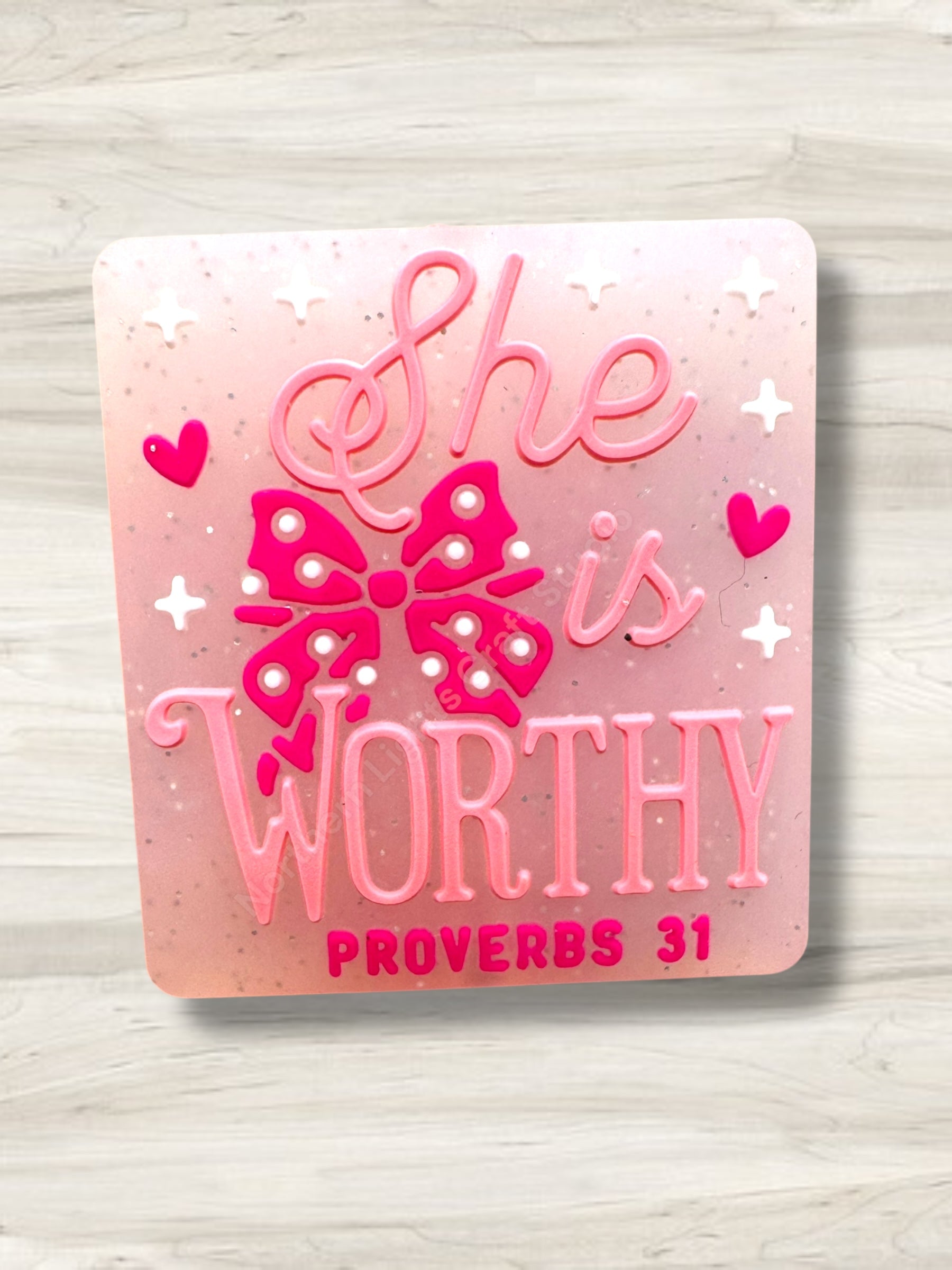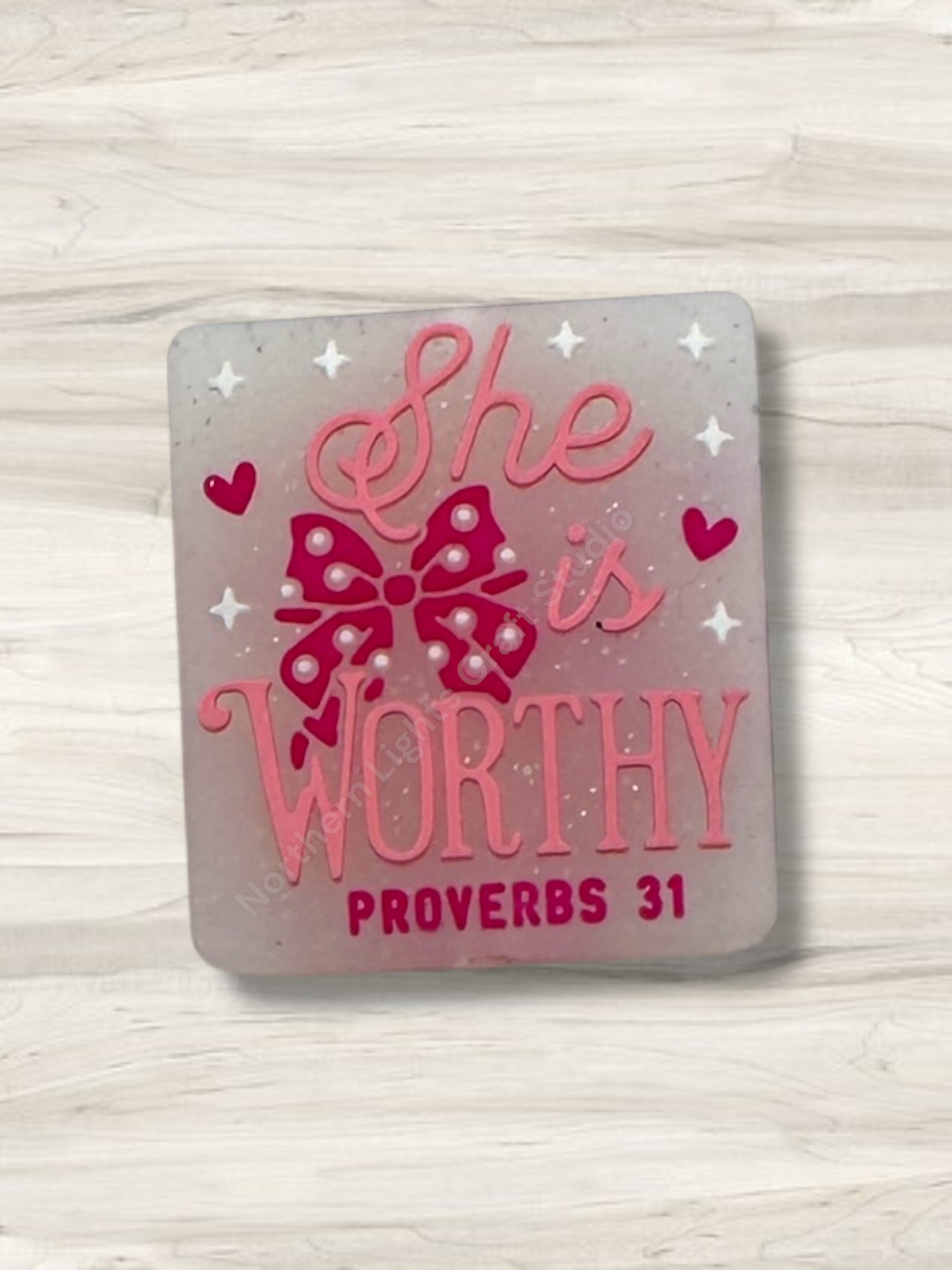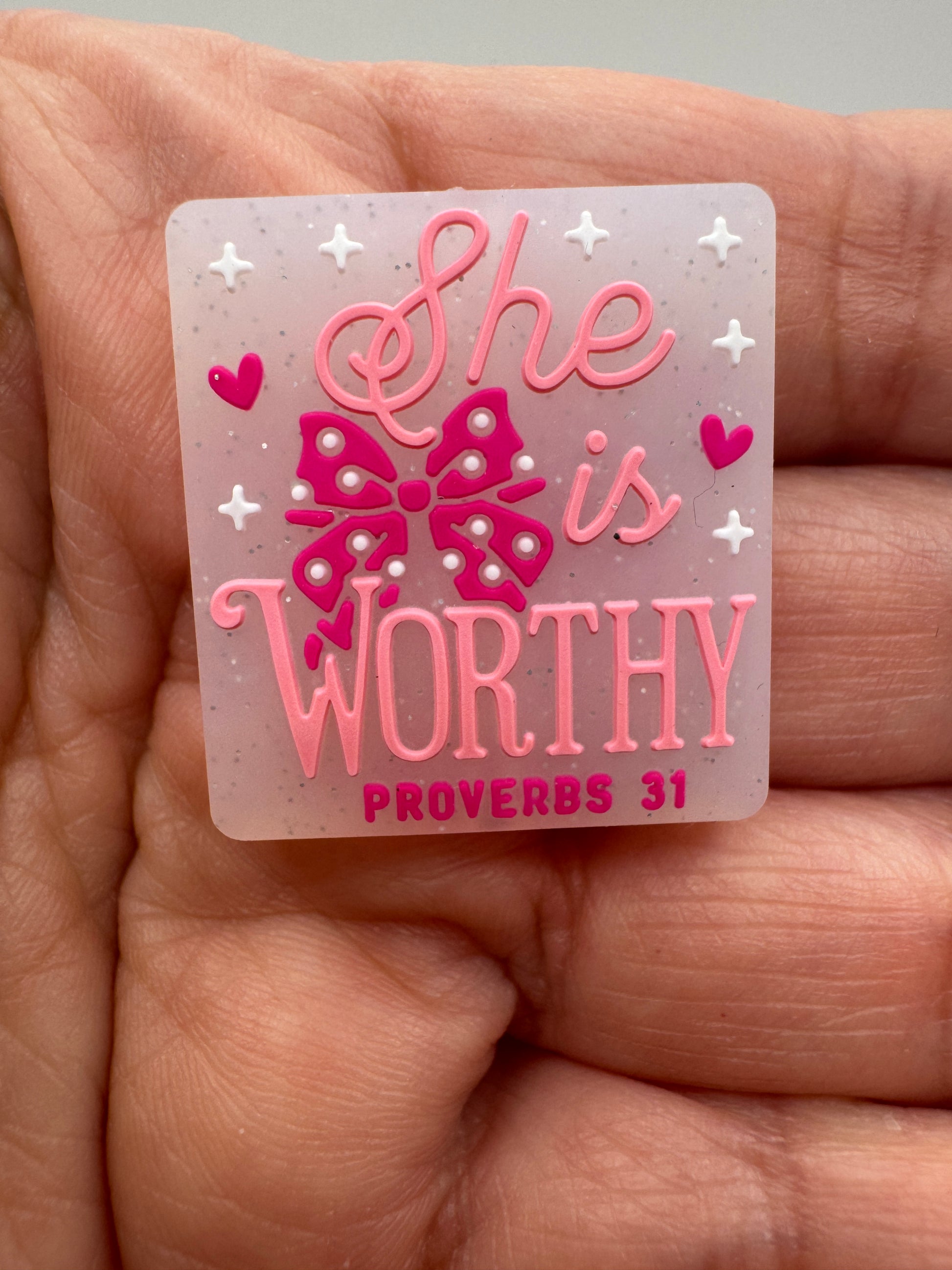 She Is Worthy Proverb 31 Glitter Jelly Focal Bead