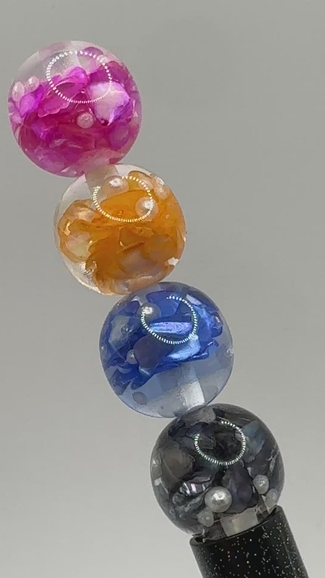 Price is for 15pc. radomly mixed color bag of 16mm premium beads. These beads are of the highest quality and considered to be premium as the inside features real dyed shell pieces and small diy pearls. This bead is exquisite! Holes are big enough to fit beaded pens.