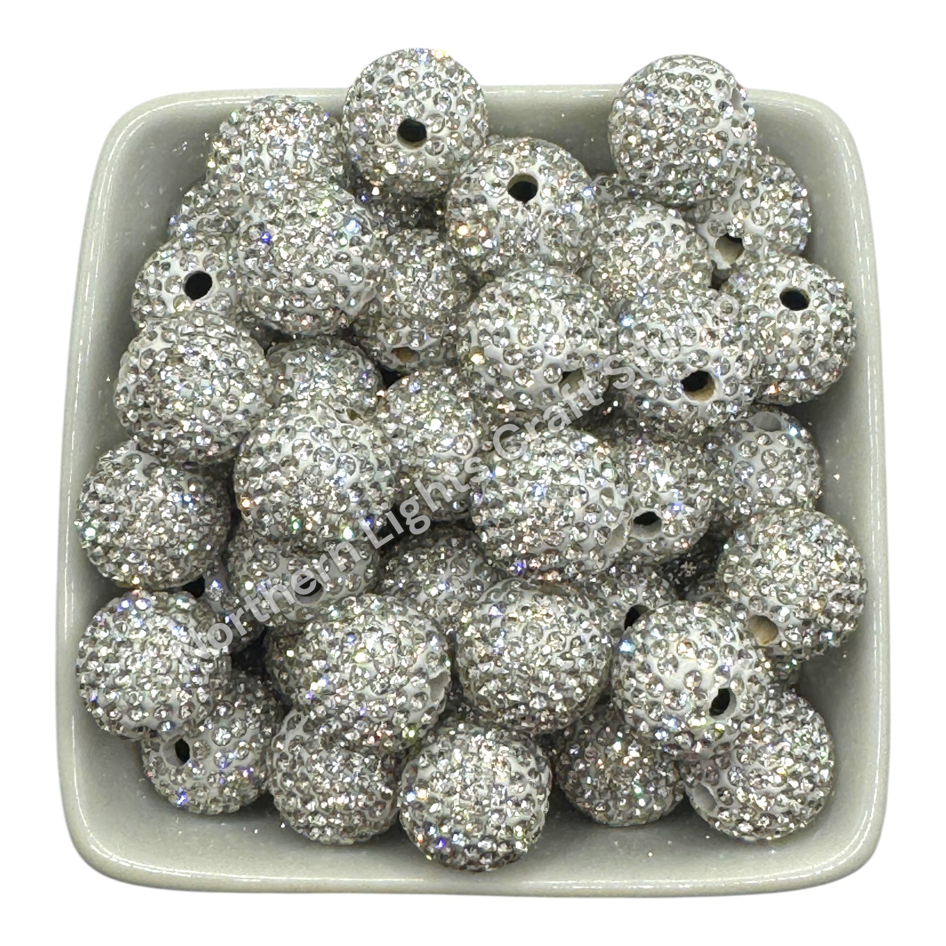Silver With AB Rhinestone Beads-16mm - 10pc.