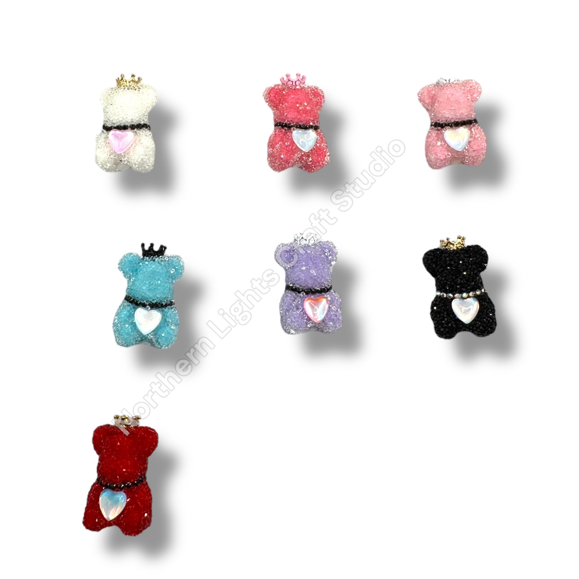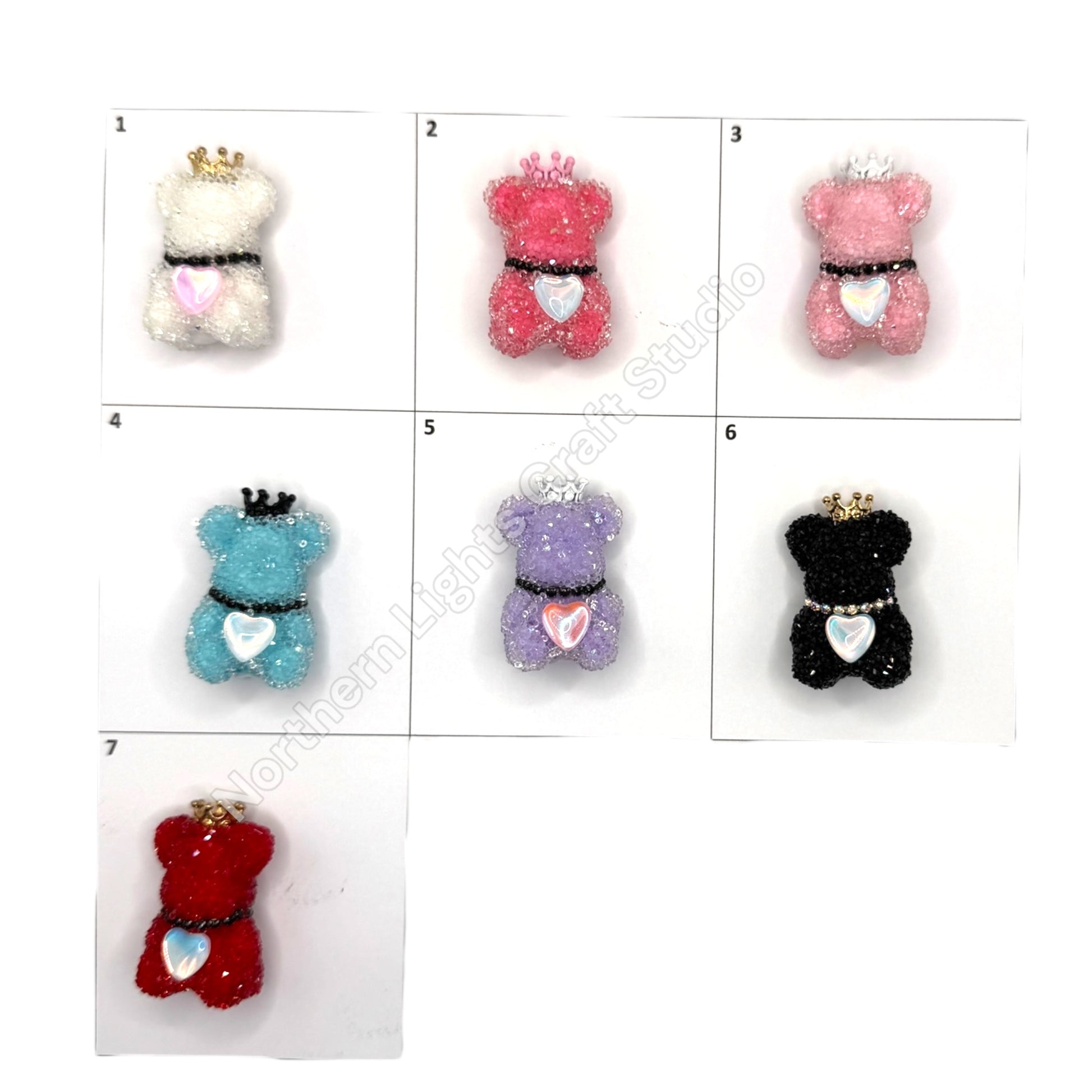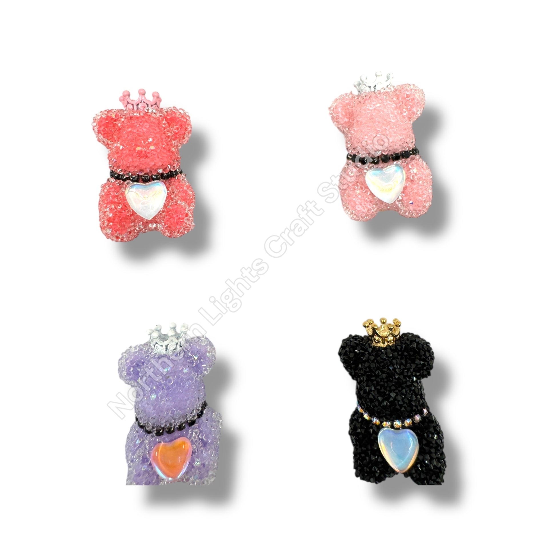 Experience the cuteness of Sugar Fancy Bears with a crown. These adorable bear beads, made with an acrylic base and coated with tiny crystals, are a sugar bead lover's dream. Beads easily fit on beaded pens. Plus, the holes can be easily cleaned for hassle-free crafting. Bears are approximately 50mm wide x 40mm tall from wing to wing.