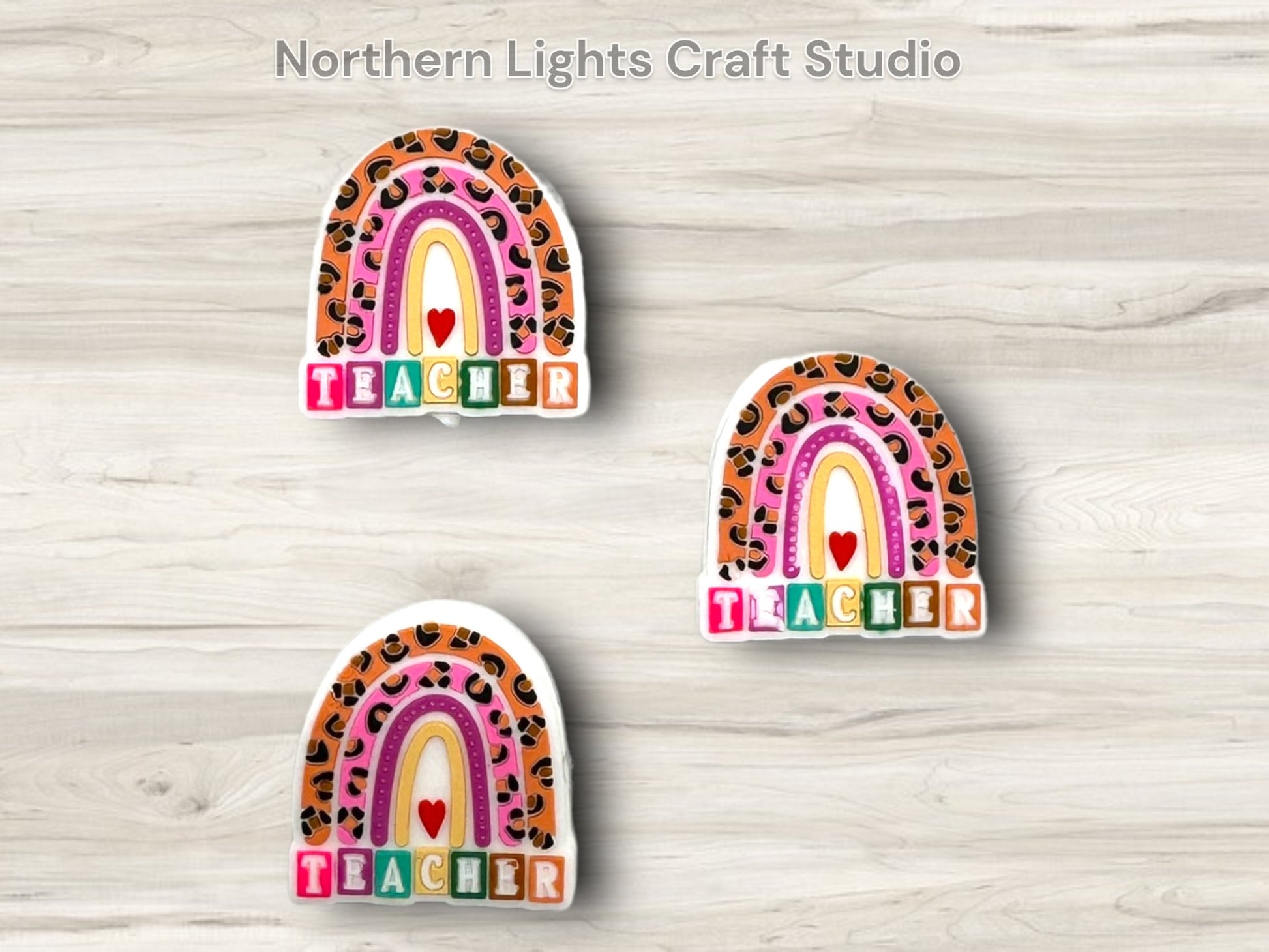 Teacher Rainbow Focal Bead, Leopard Print Teacher Rainbow Focal