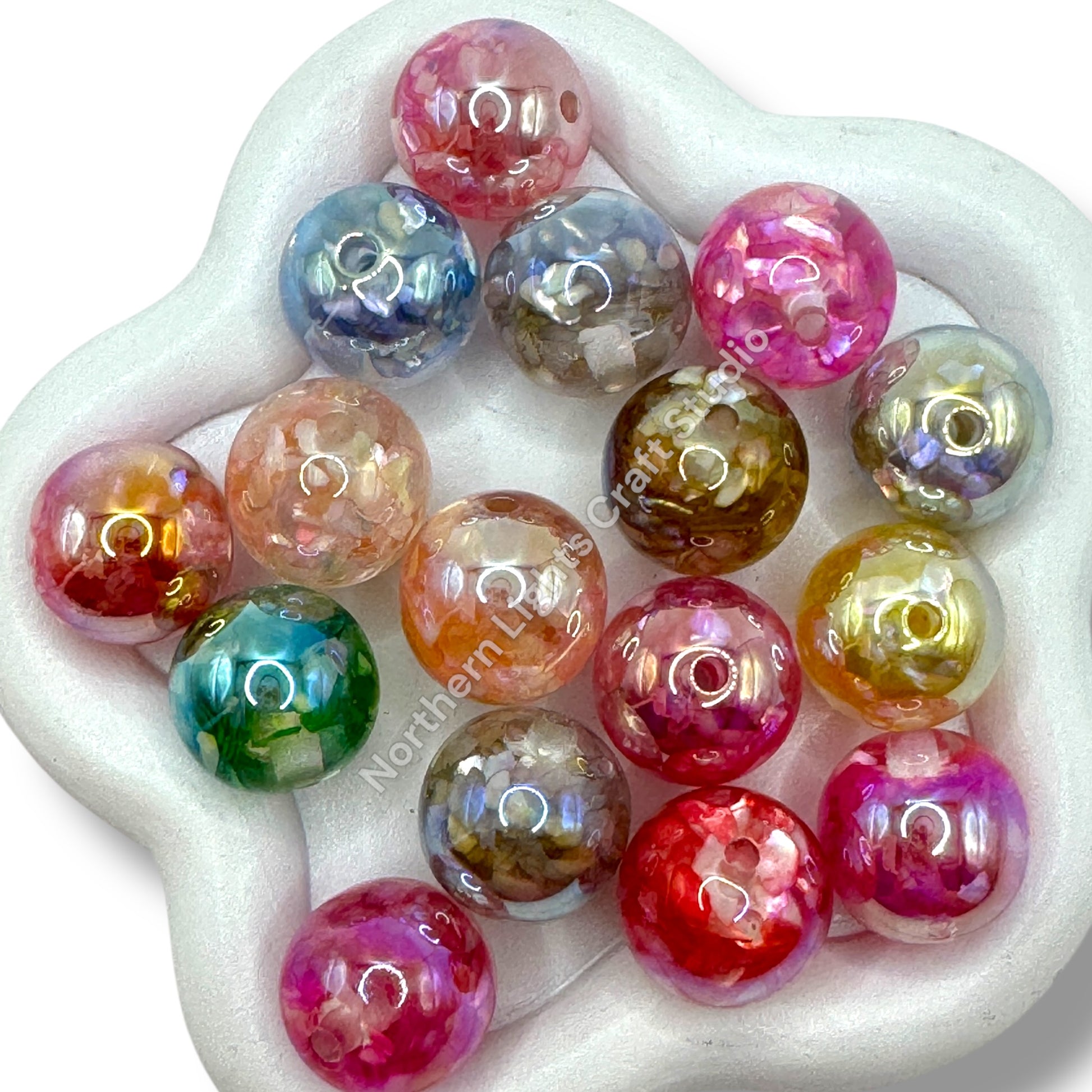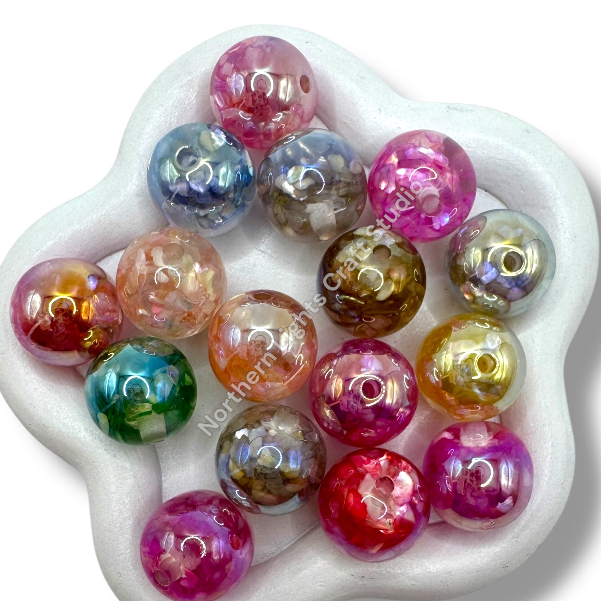 UV Coated Acrylic Shell Beads - 16mm with genuine shell fragments inside