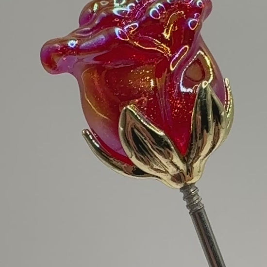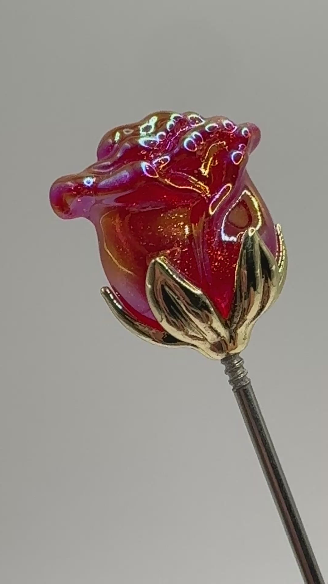 Price is for 2pc. Beads are approximately 20mm wide at the widest part x 23mm tall. These gorgeous UV coated rose flower toppers have a gold leaf at the base. While the holes are drilled all the way through, these will not fit all the way down on a beadable pen unless you drill. They are perfect for jewelry making! They fit nicely on top of the pen as a pen topper as a replacement for the pen cap. Note: these do not fit OVER the pen cap itself, they are used in place of the cap.