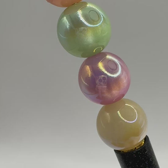 Price is for one randomly picked mixed color pack of 20 beads. Beads are 16mm and are made of acrylic. Beads have a gentle ombre effect with two colors on each bead. For example, the green bead flows into a yellow and green color.