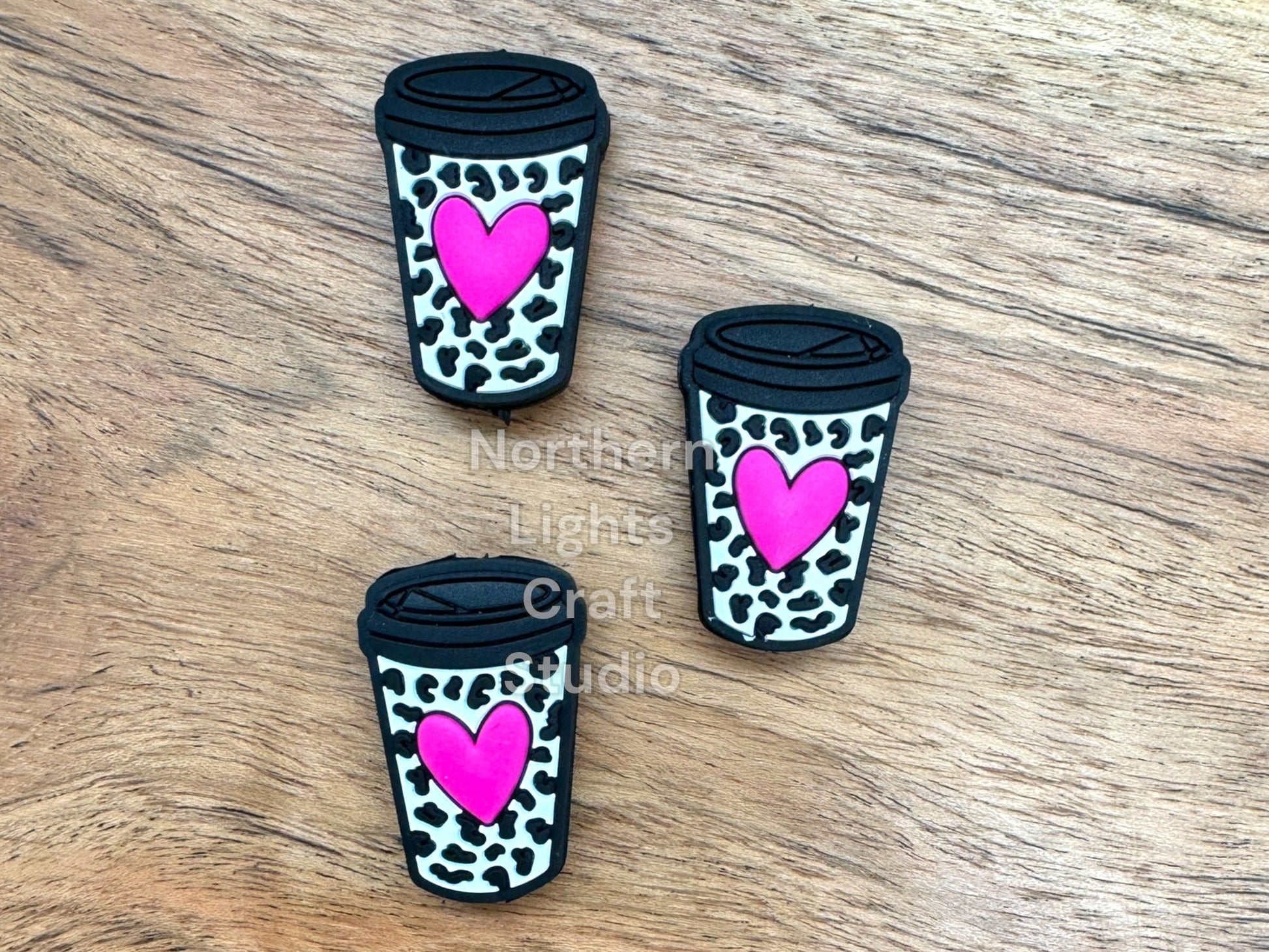 White Leopard Pink Heart Coffee Cup Focal, Valentine's Day Theme Focal Beads, Coffee Focal